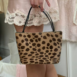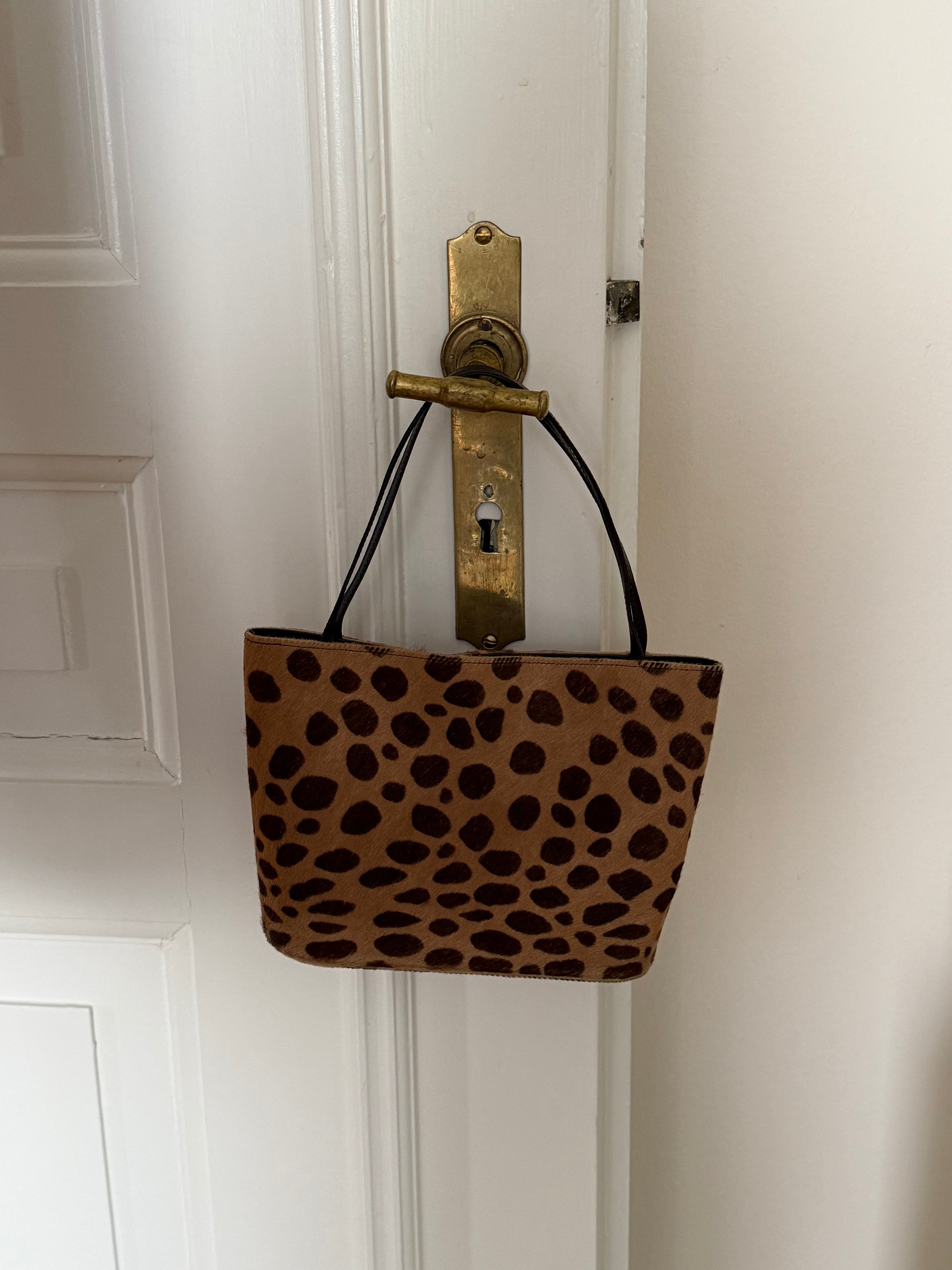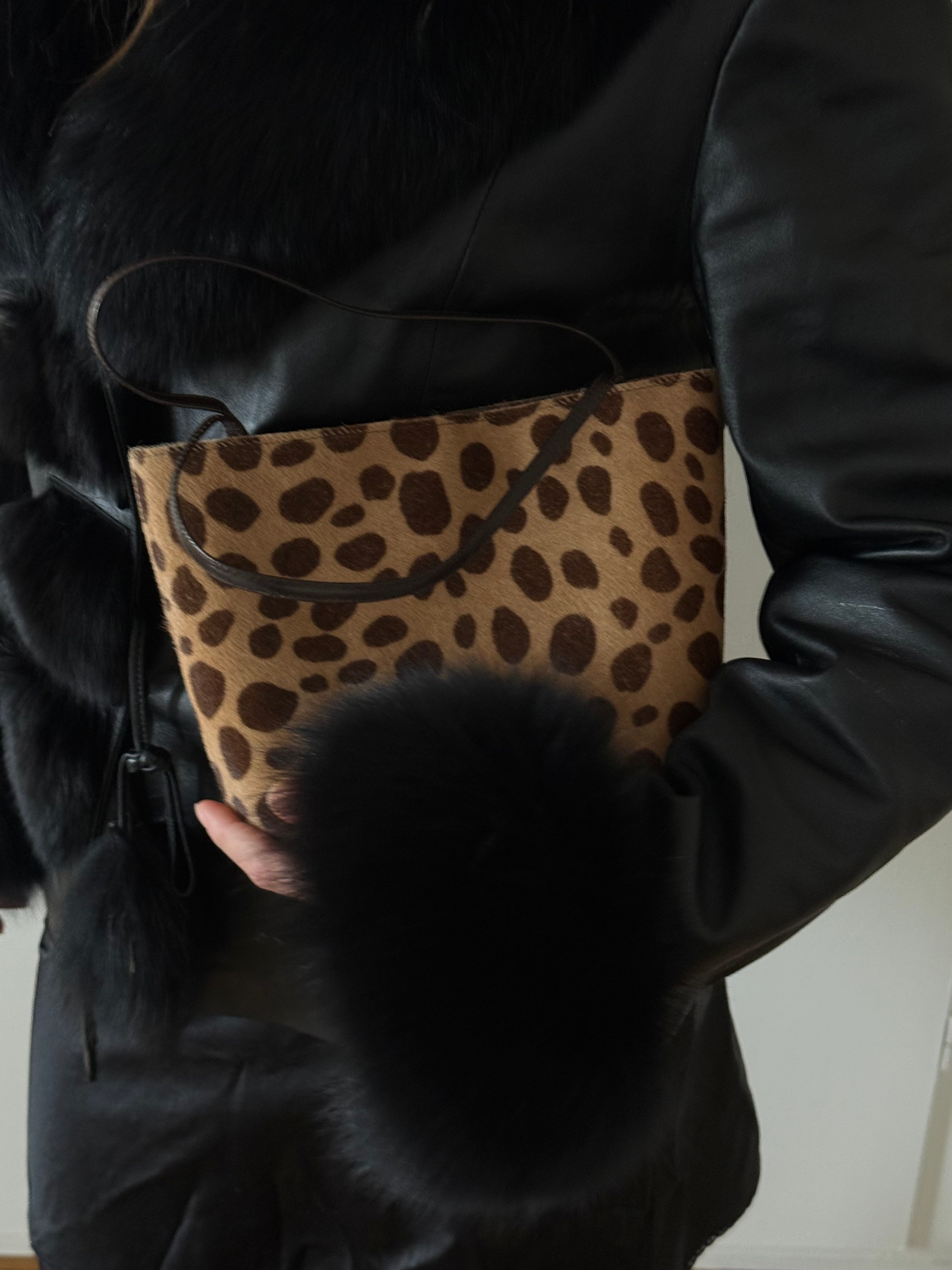 Beautiful vintage pony hair mini bag from Manolo Blahnik with cheetah print and magnetic closure.