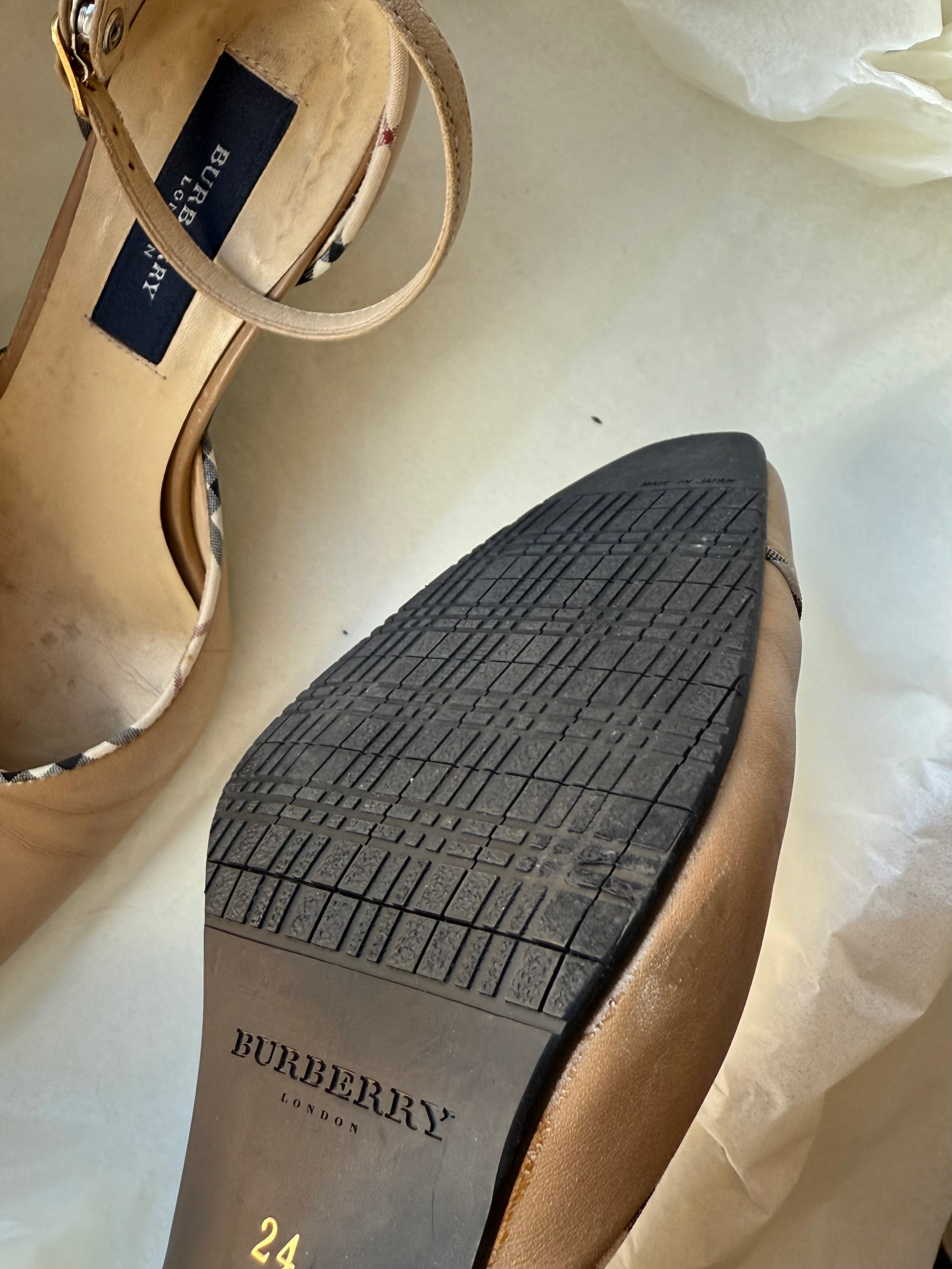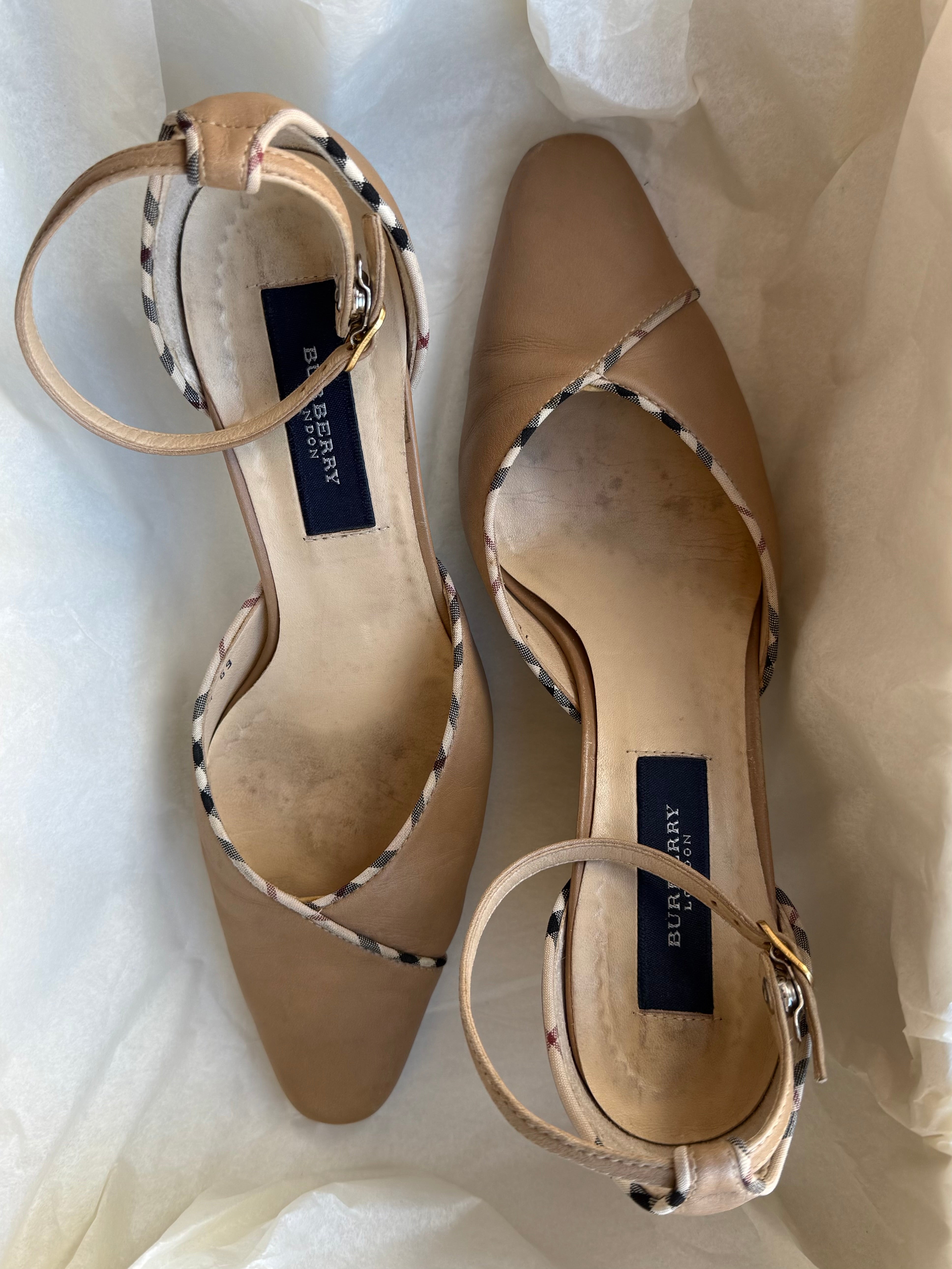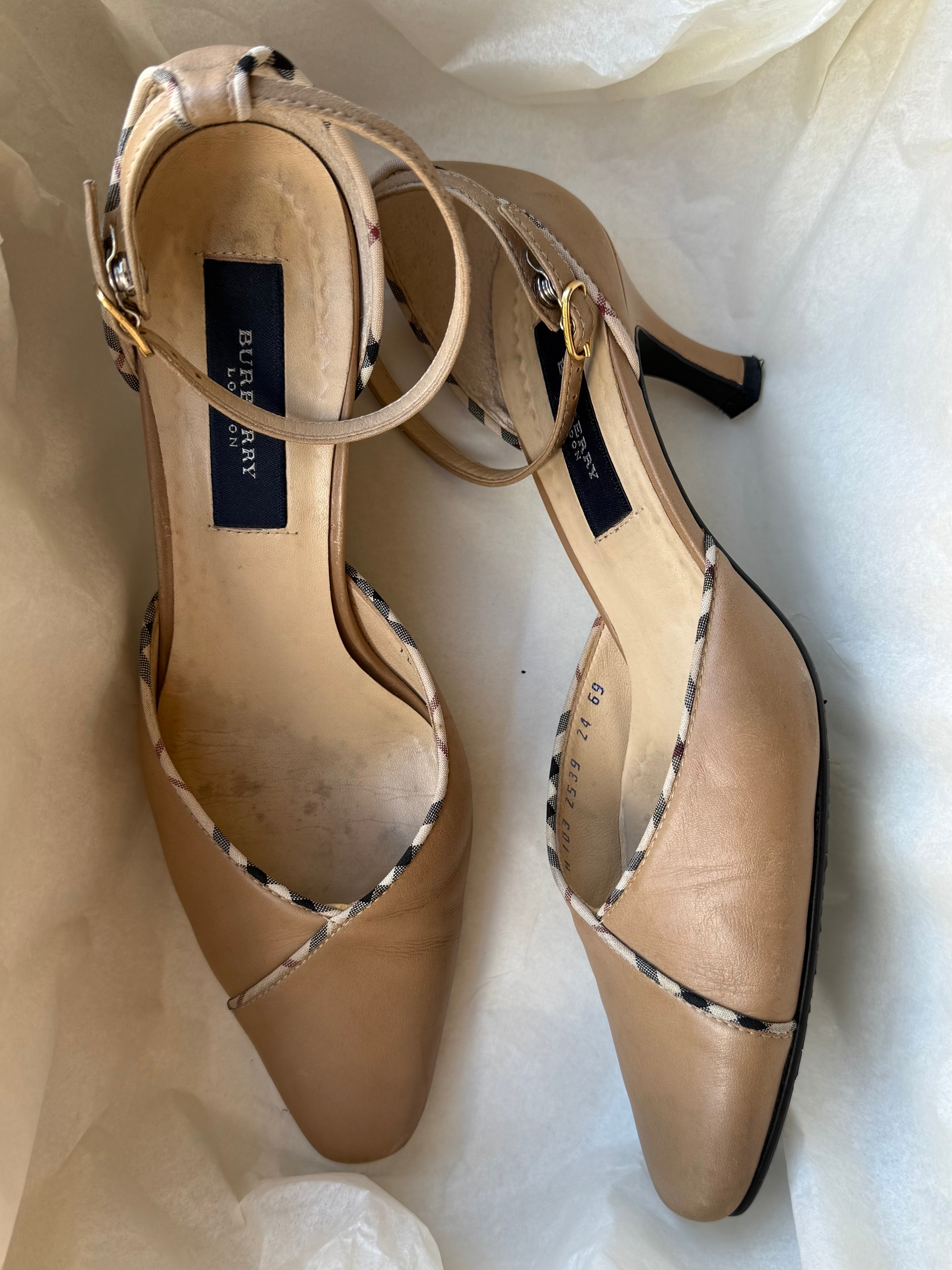 Vintage Burberry leather heels with adjustable straps. Comes with original box.