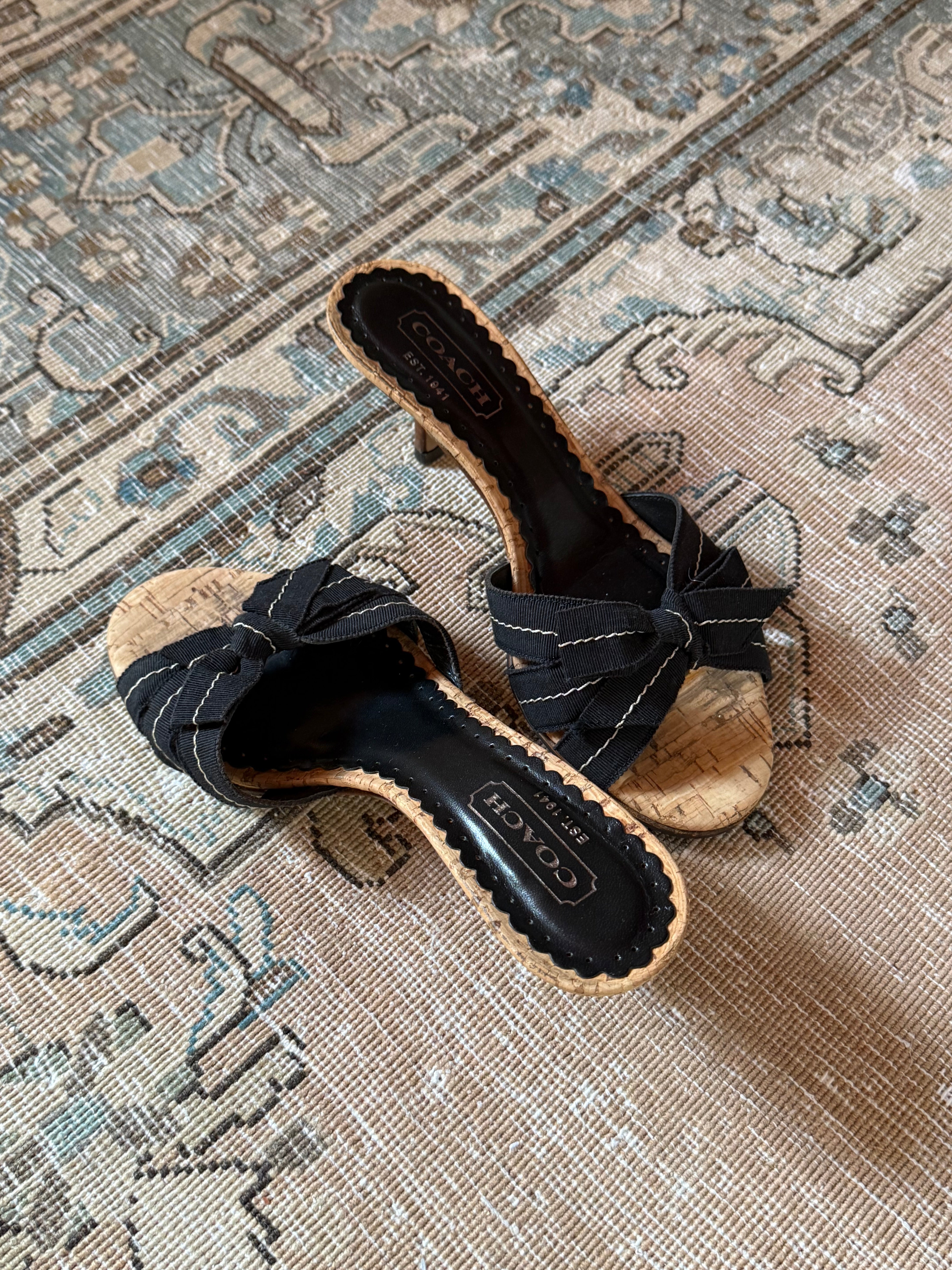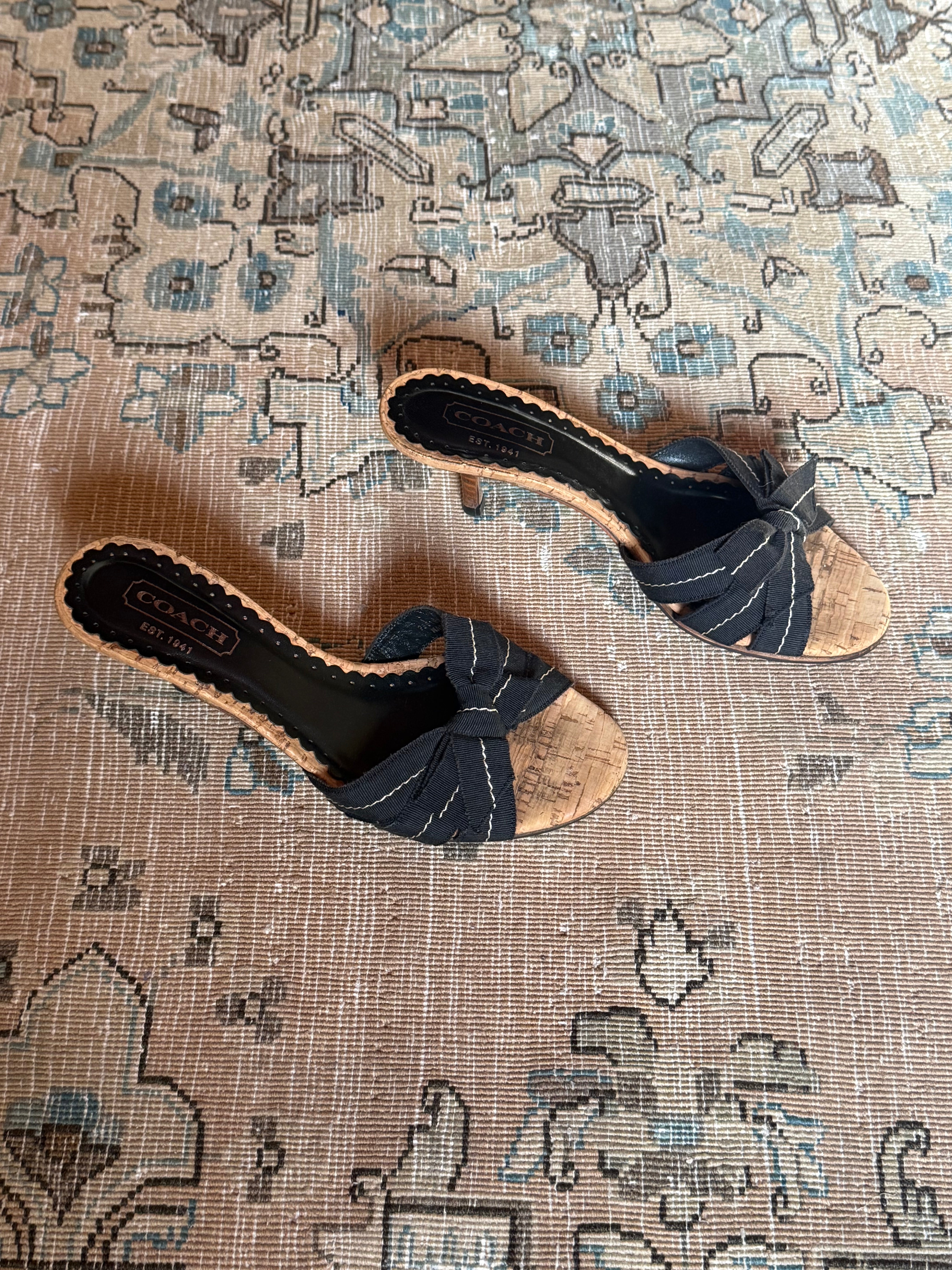 Cute vintage Coach cork kitten heels with a bow. In great condition and comes with the original packaging.