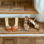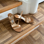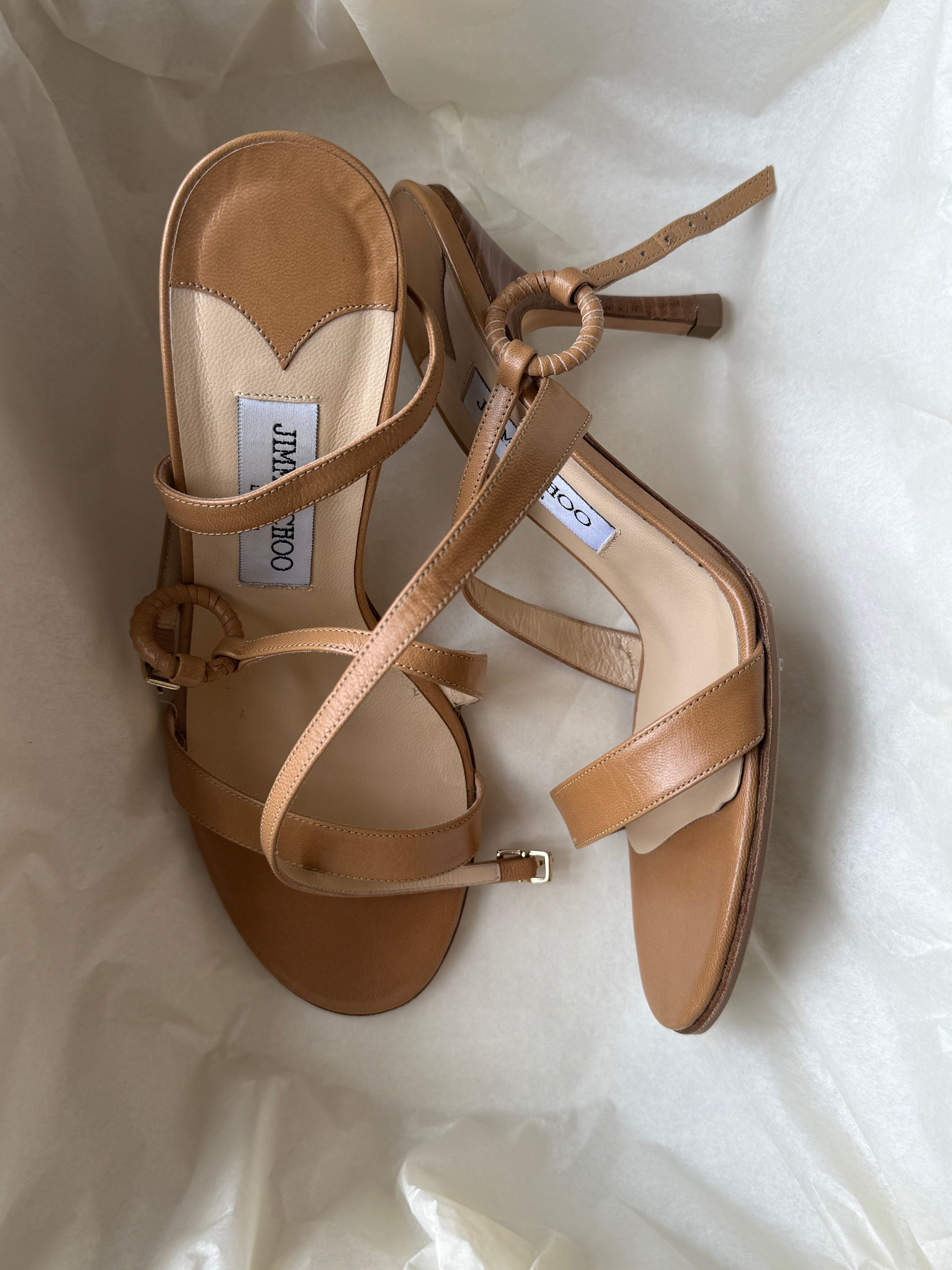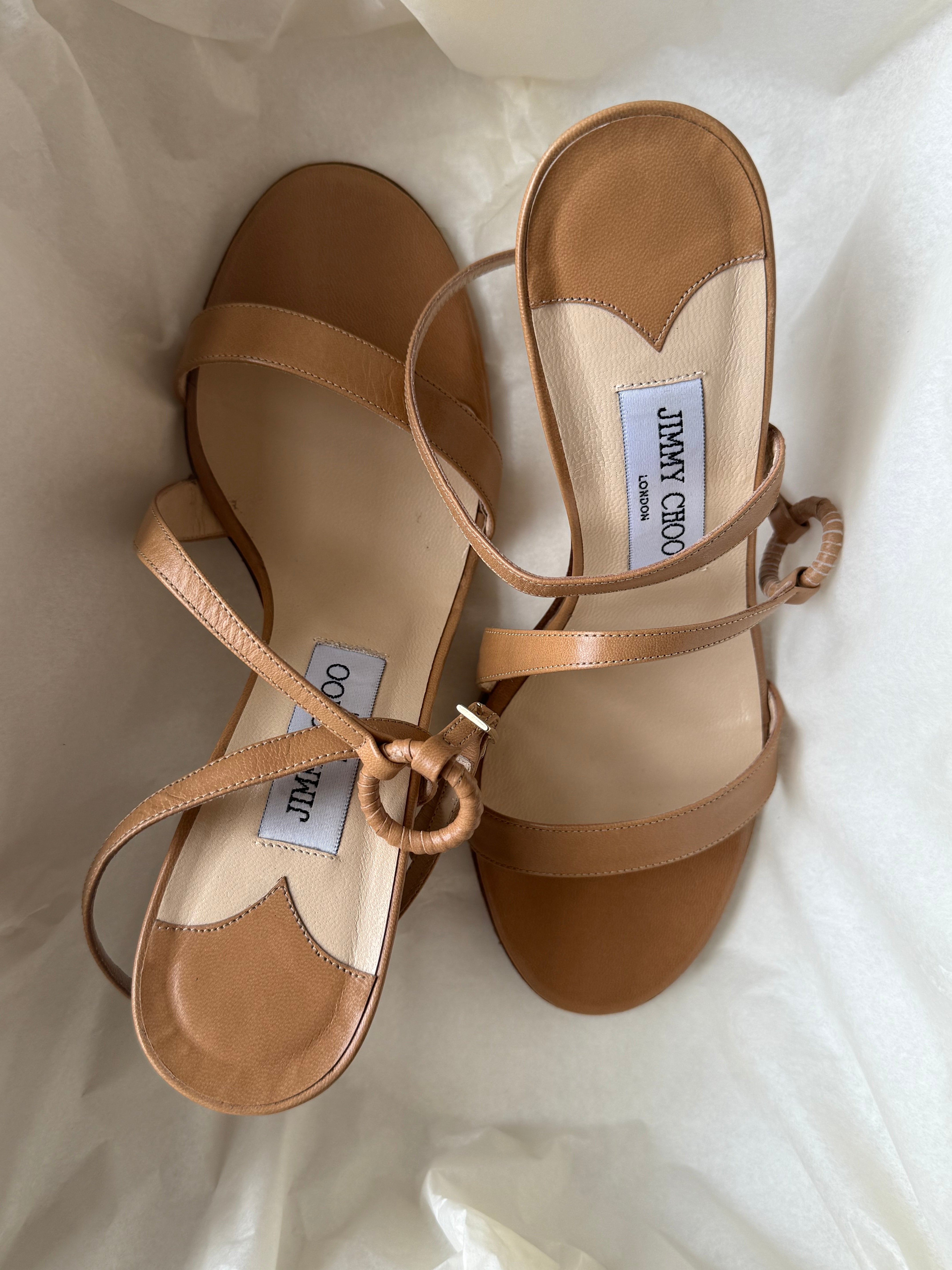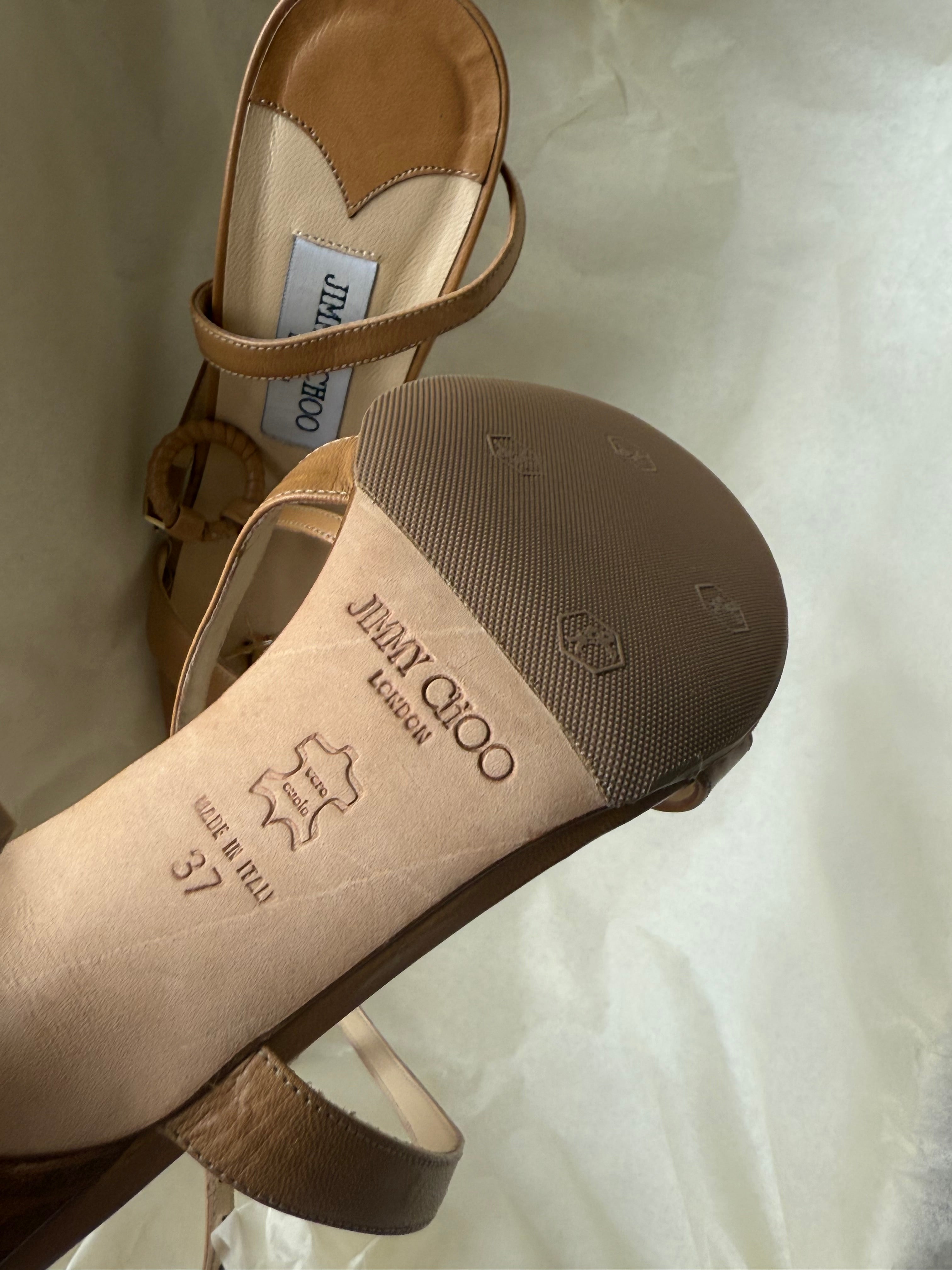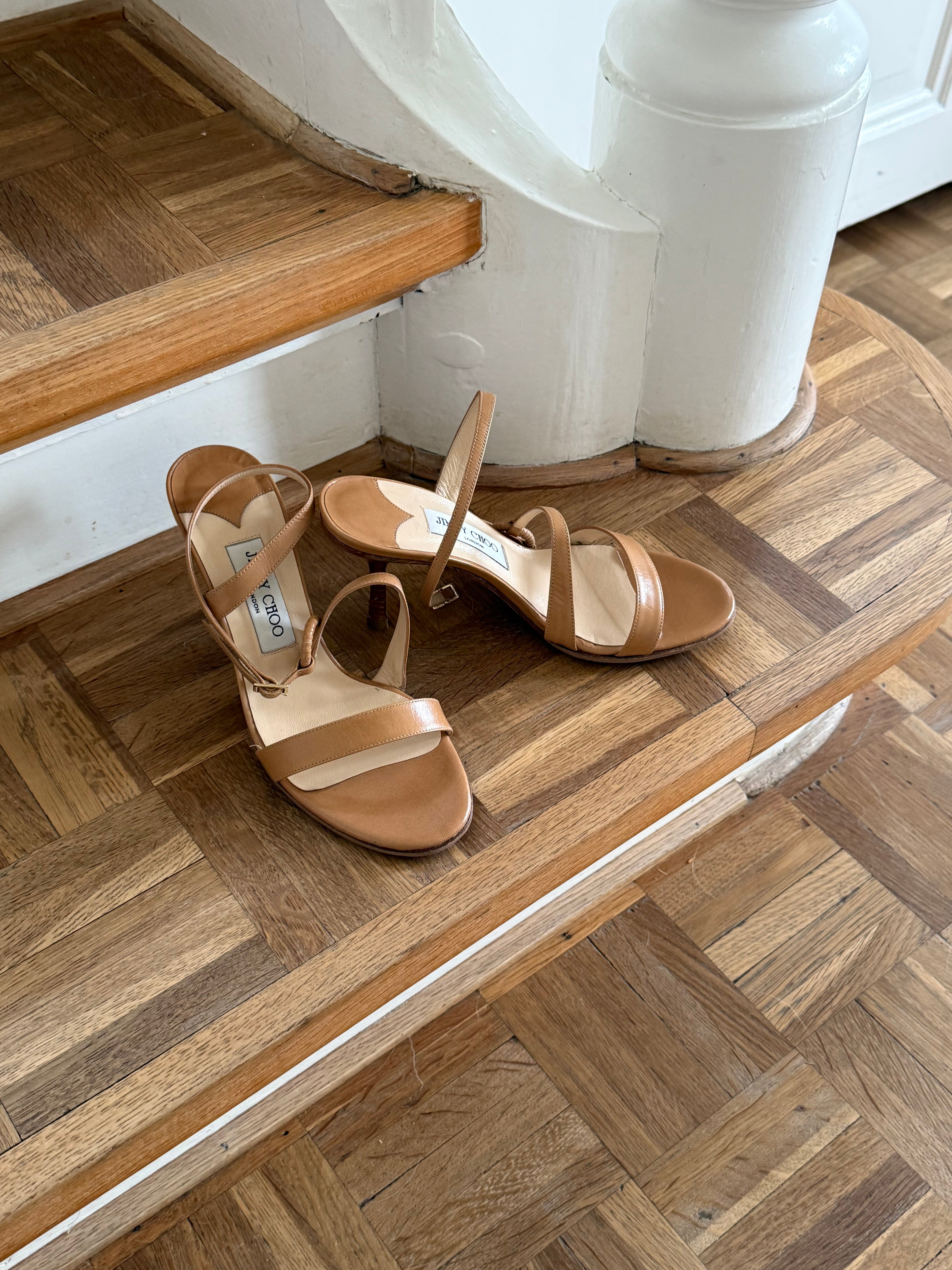 Vintage Jimmy Choo's in light brown leather with original dustbag and shoebox.