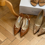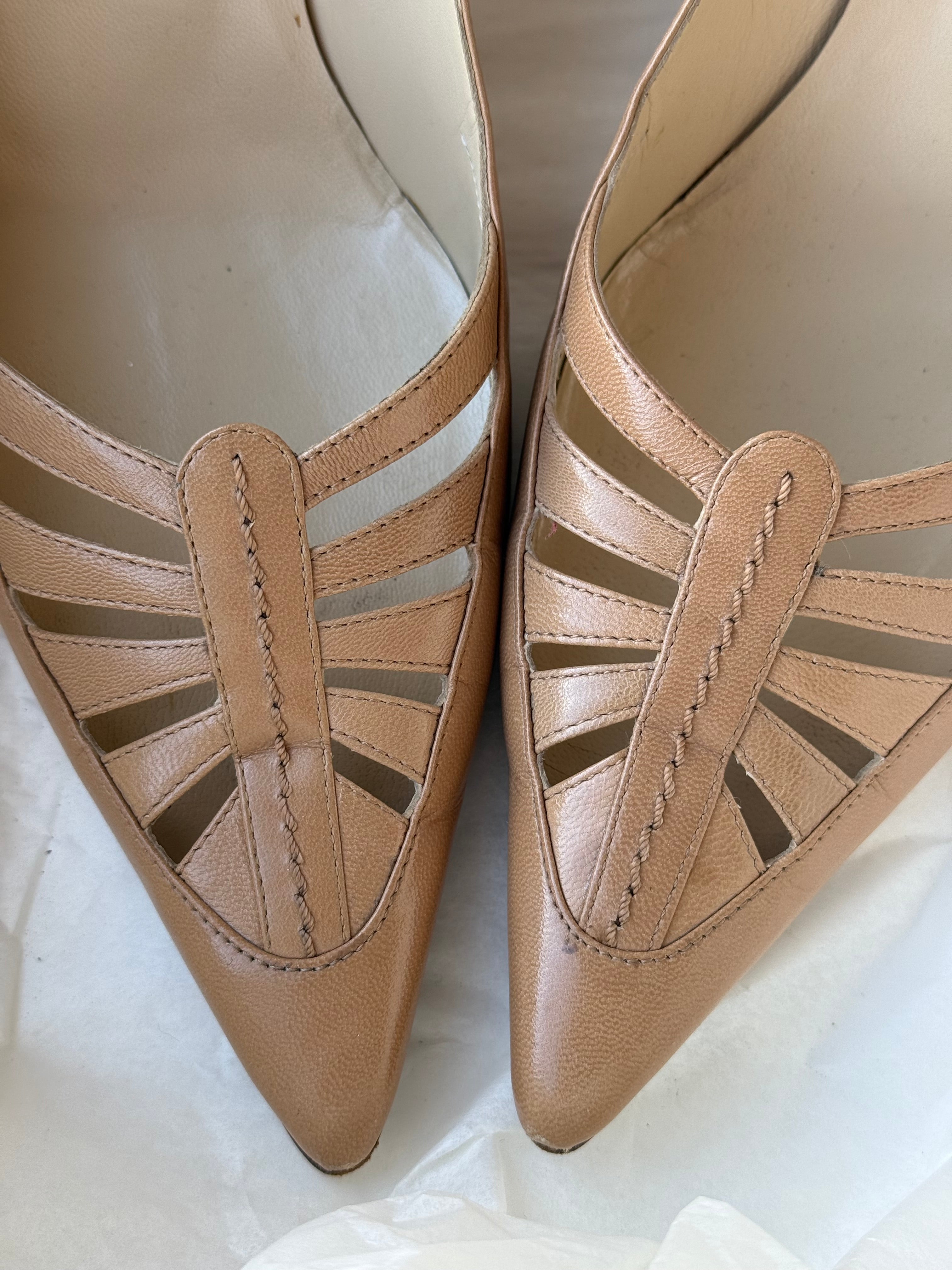 Vintage Jimmy Choo leather pumps with cut-out details.
