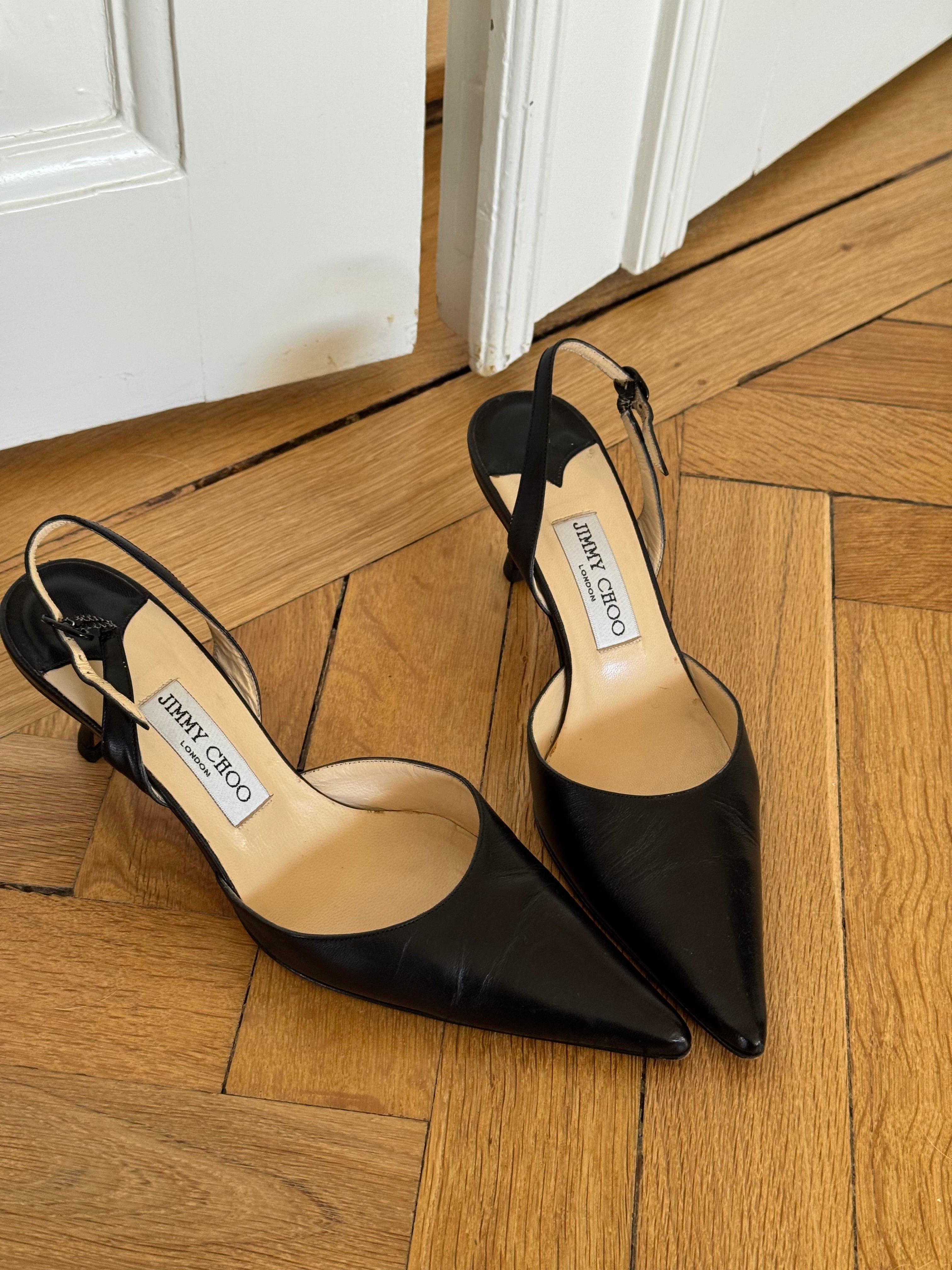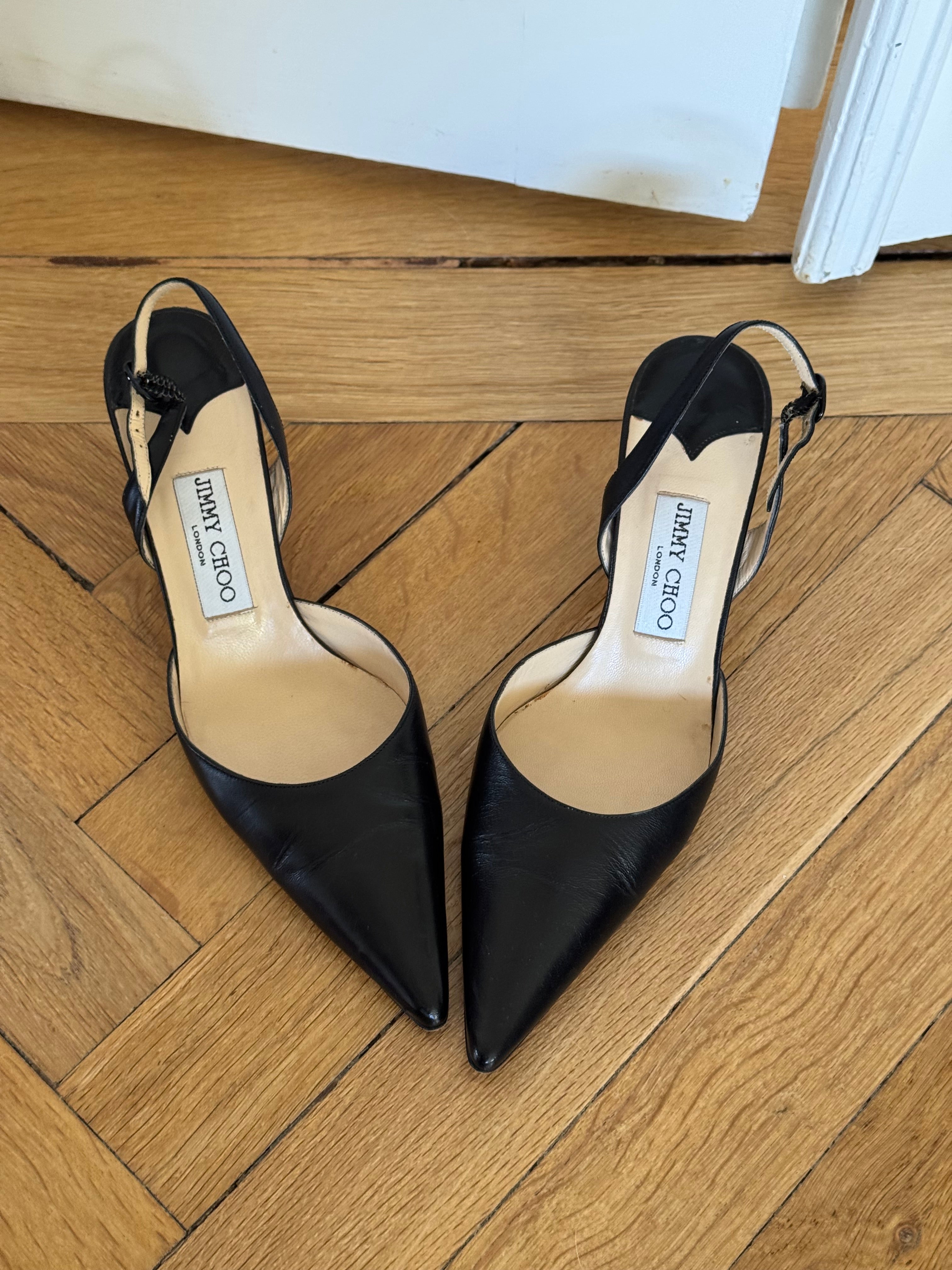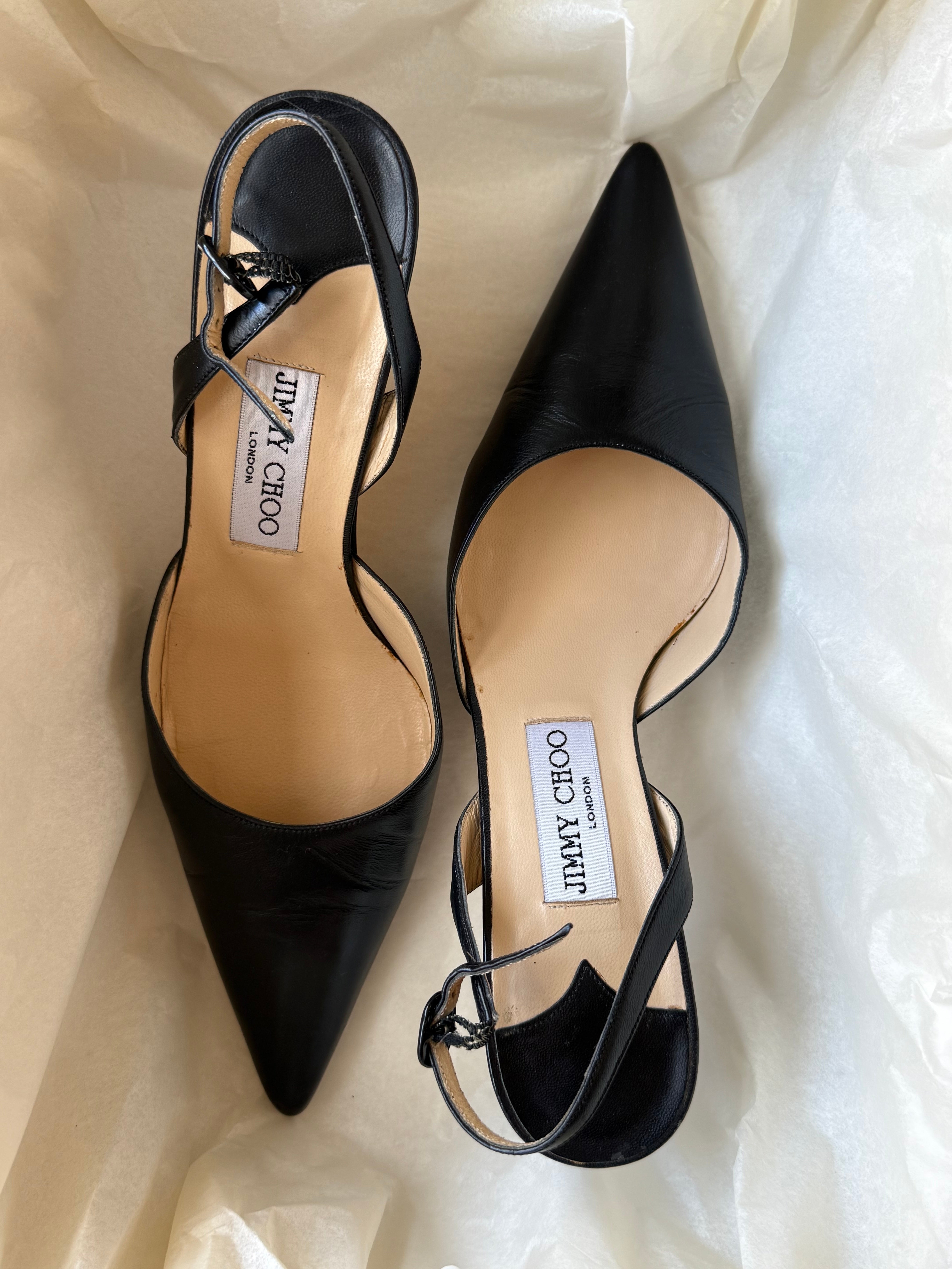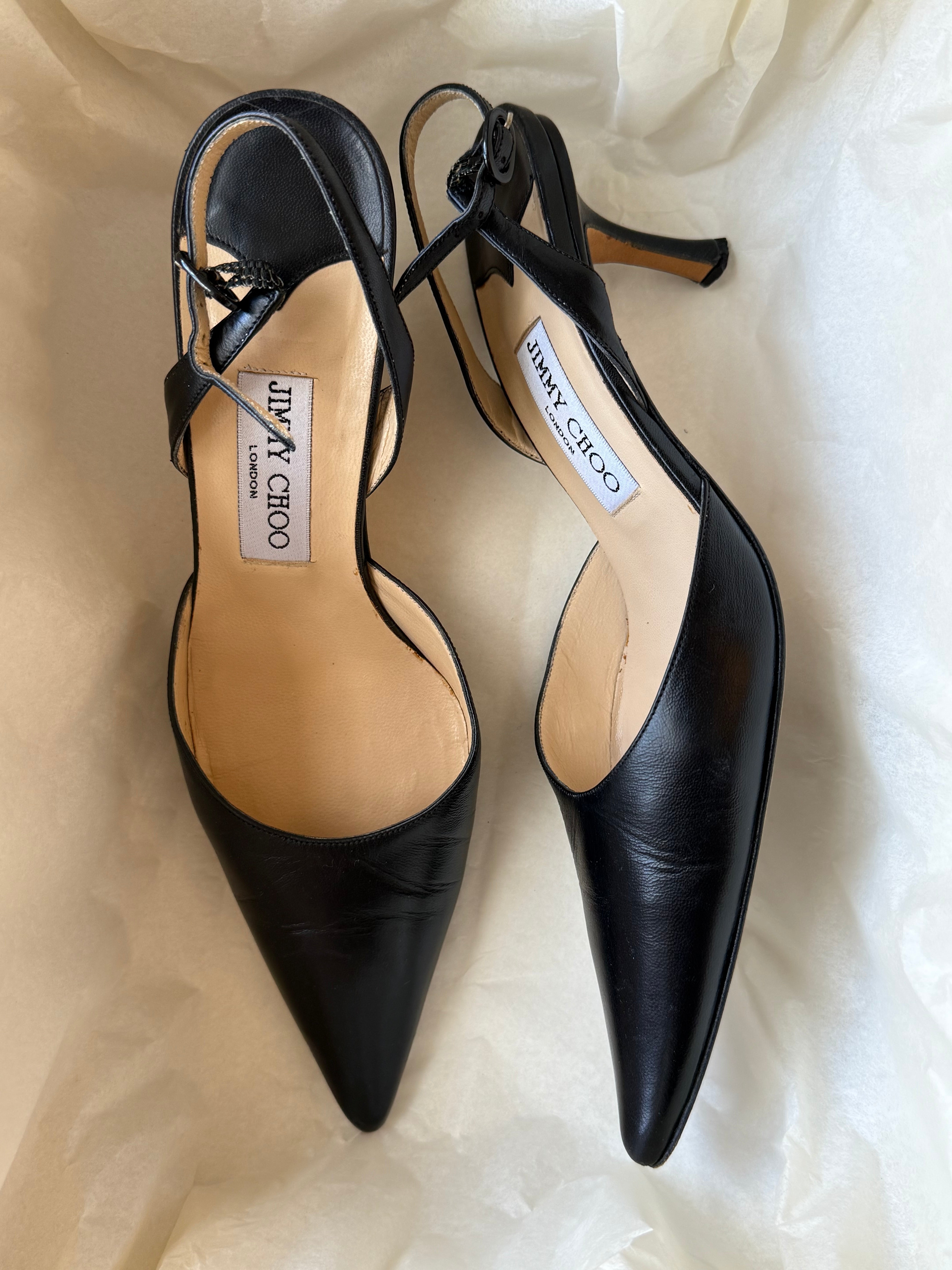 Vintage Jimmy Choo Pointed-Toe slingbacks in black leather.