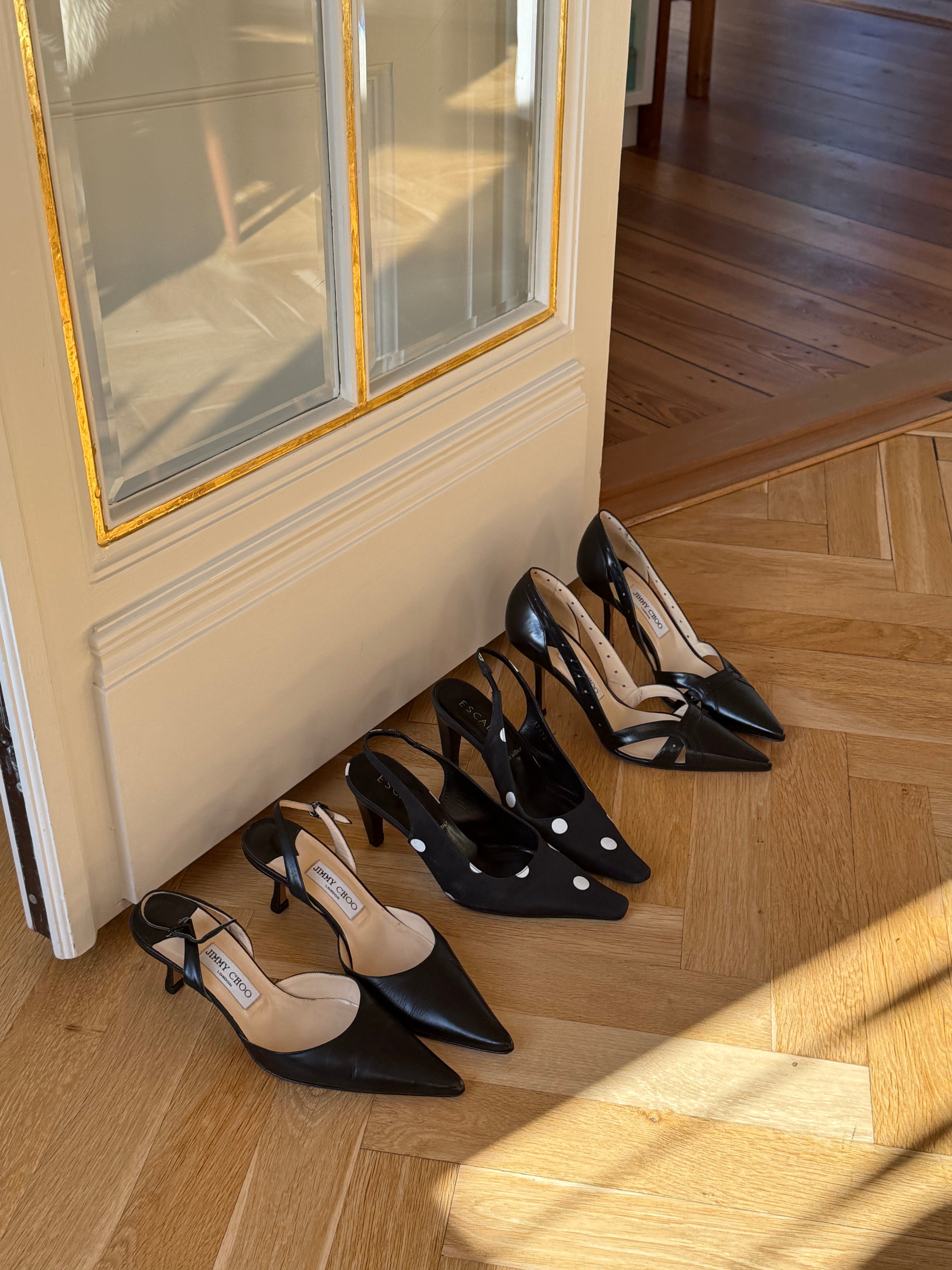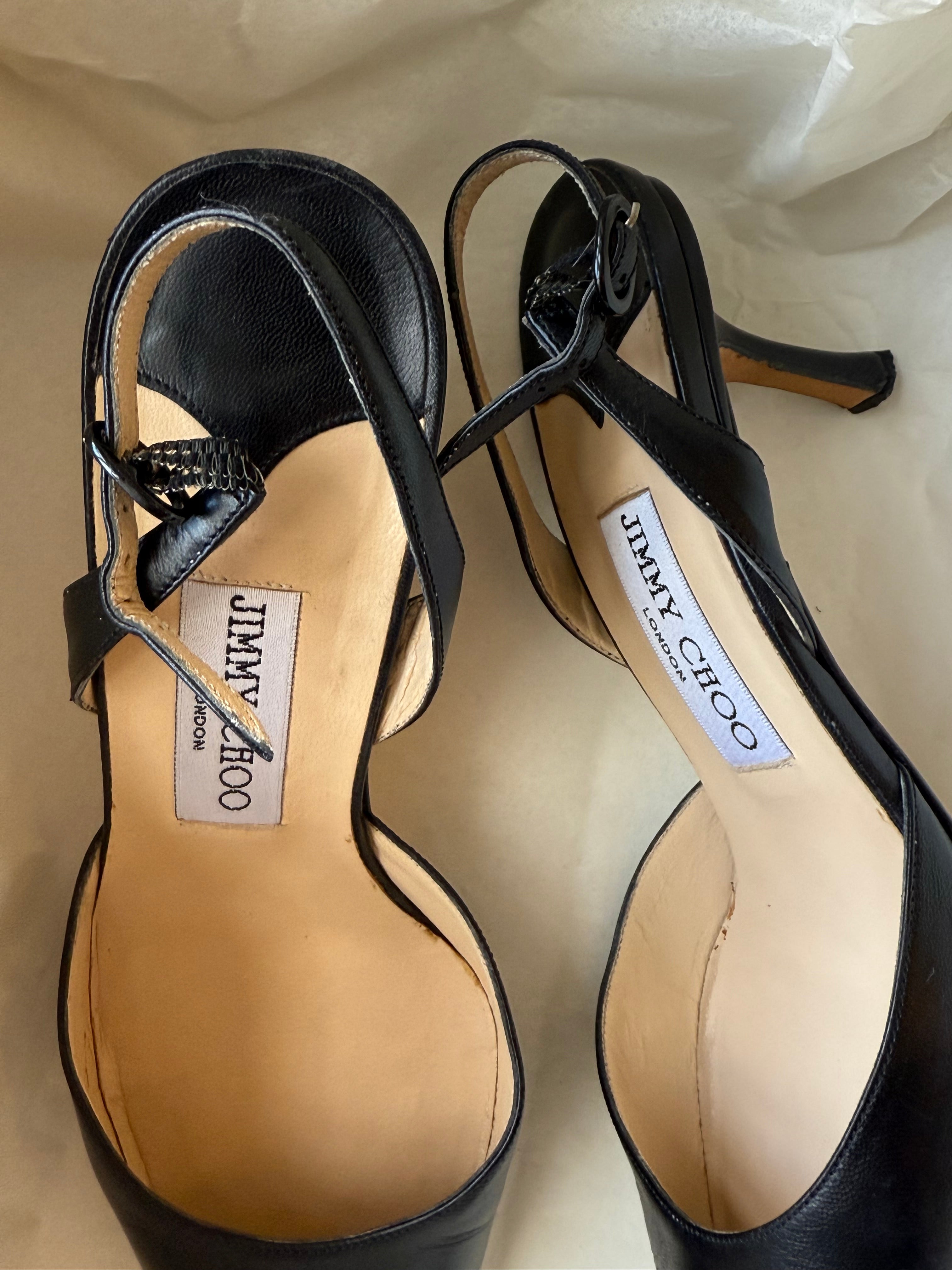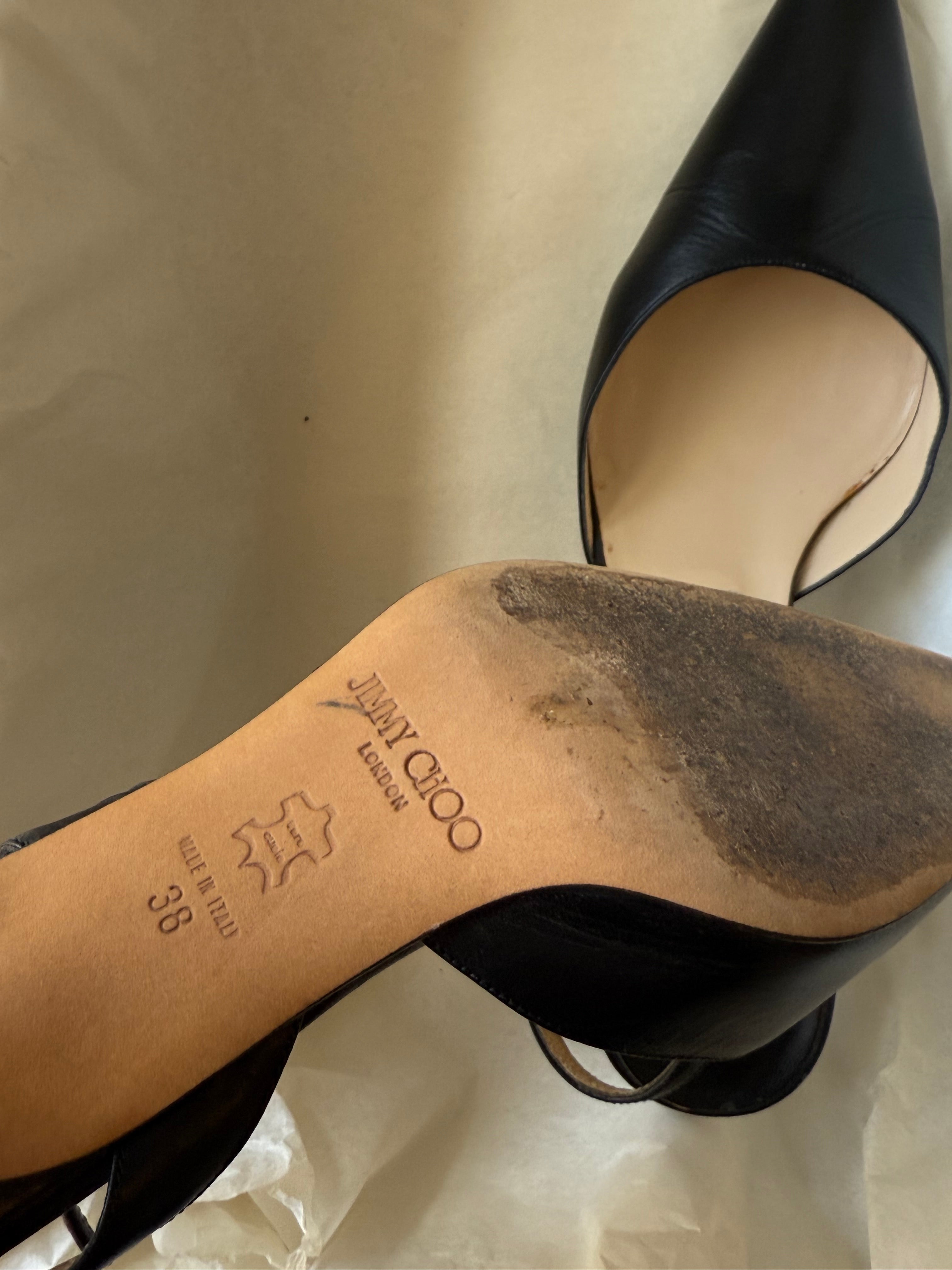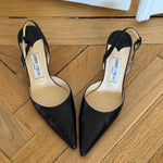 Vintage Jimmy Choo Pointed-Toe slingbacks in black leather.