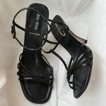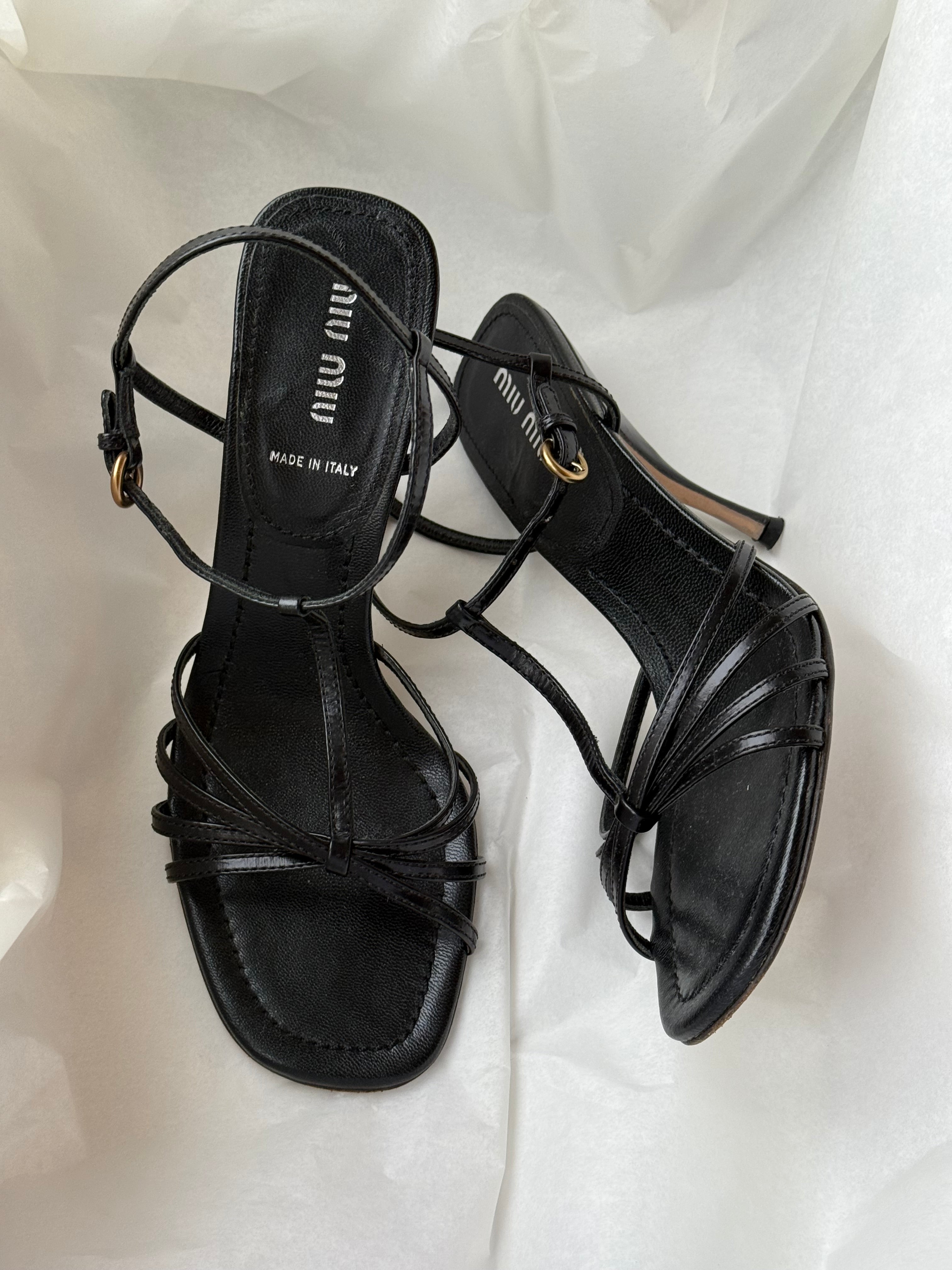 Vintage Miu Miu strappy sandals in black leather with open toe.