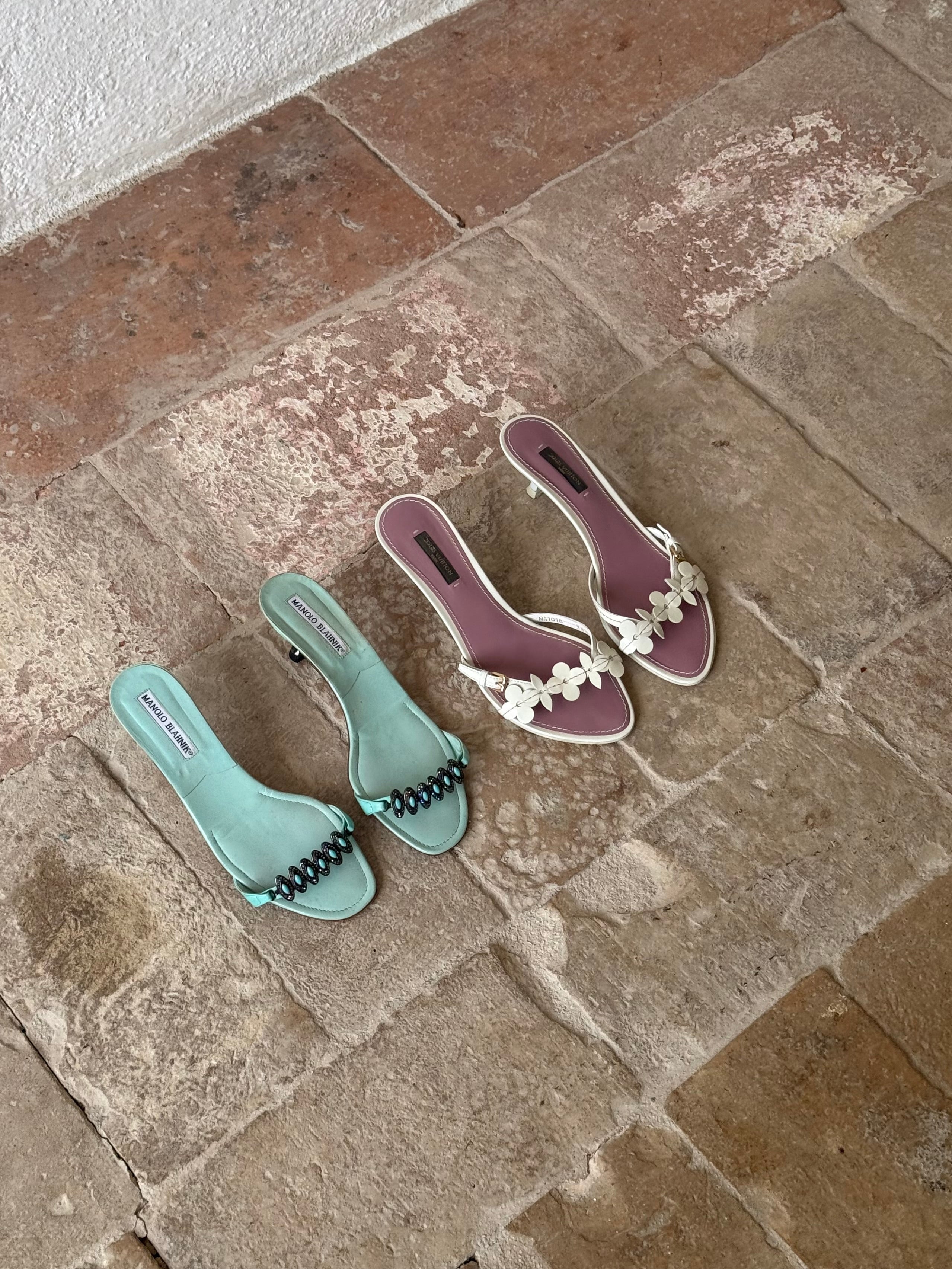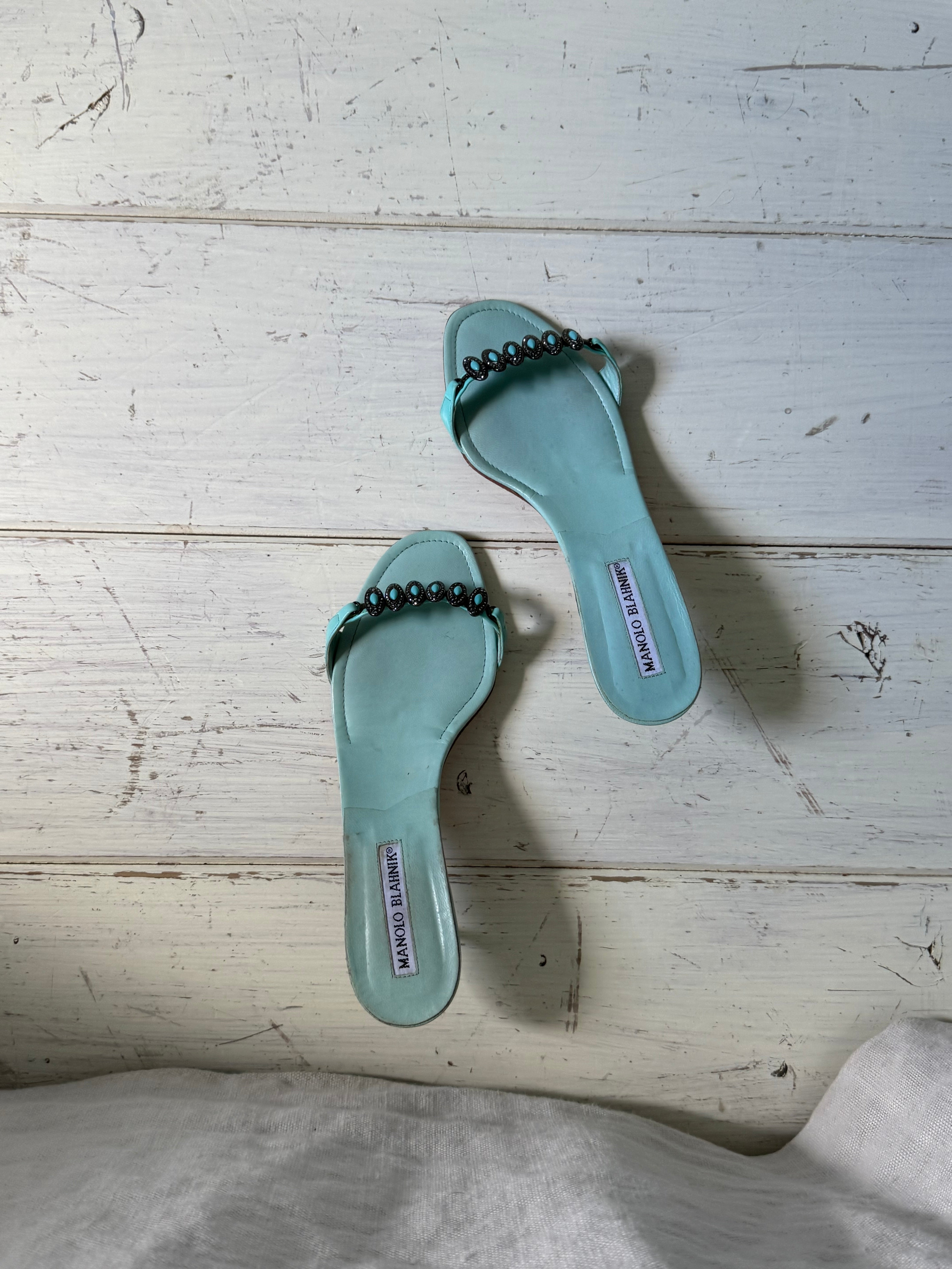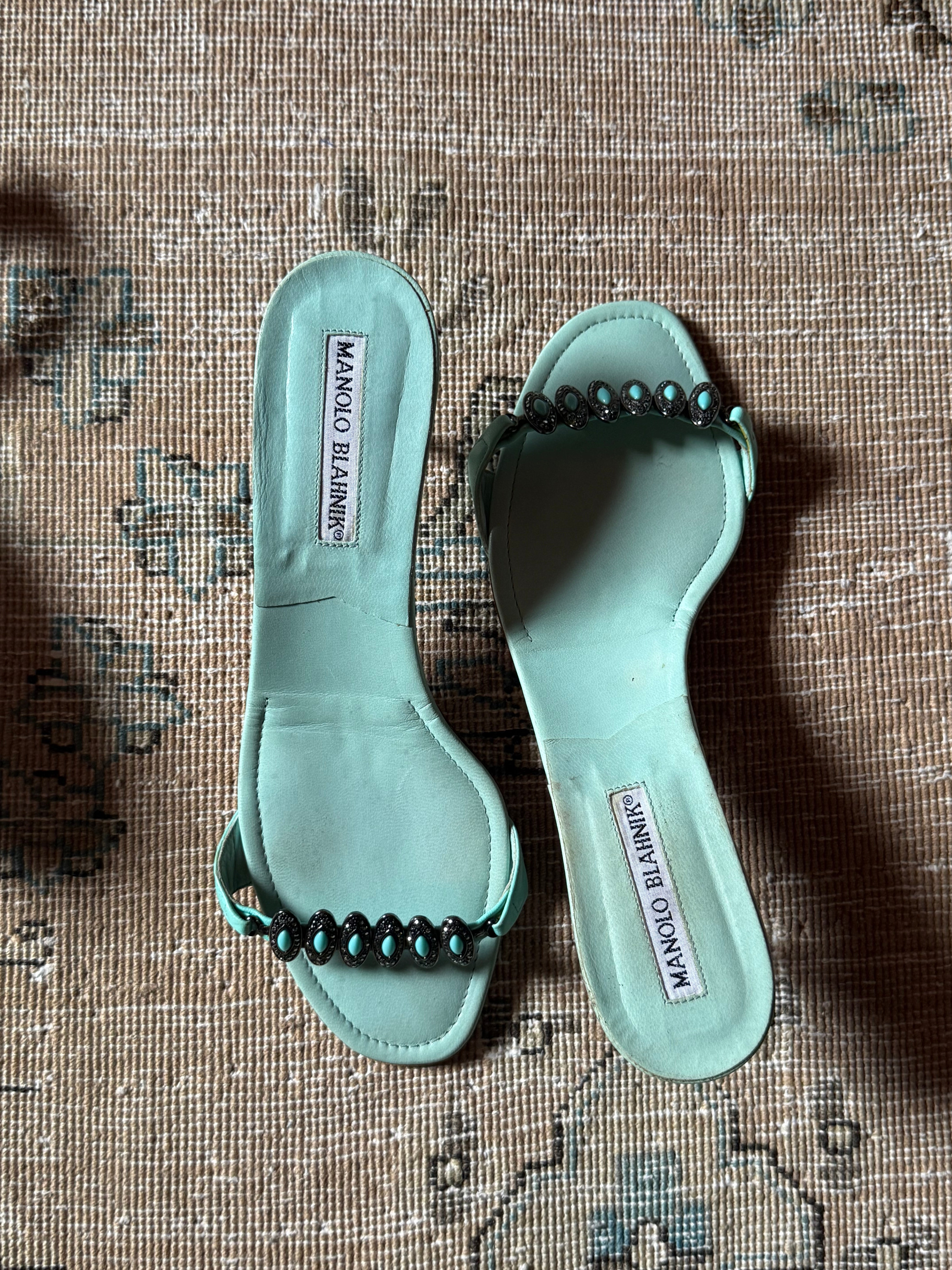 Cute vintage turquoise Manolo Blahnik mules in good condition with only minor signs of wear. Comes with all original packaging.