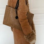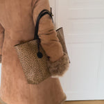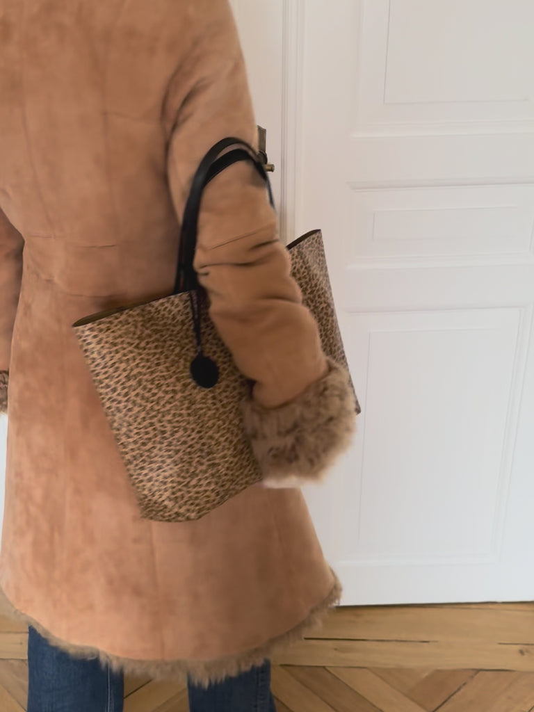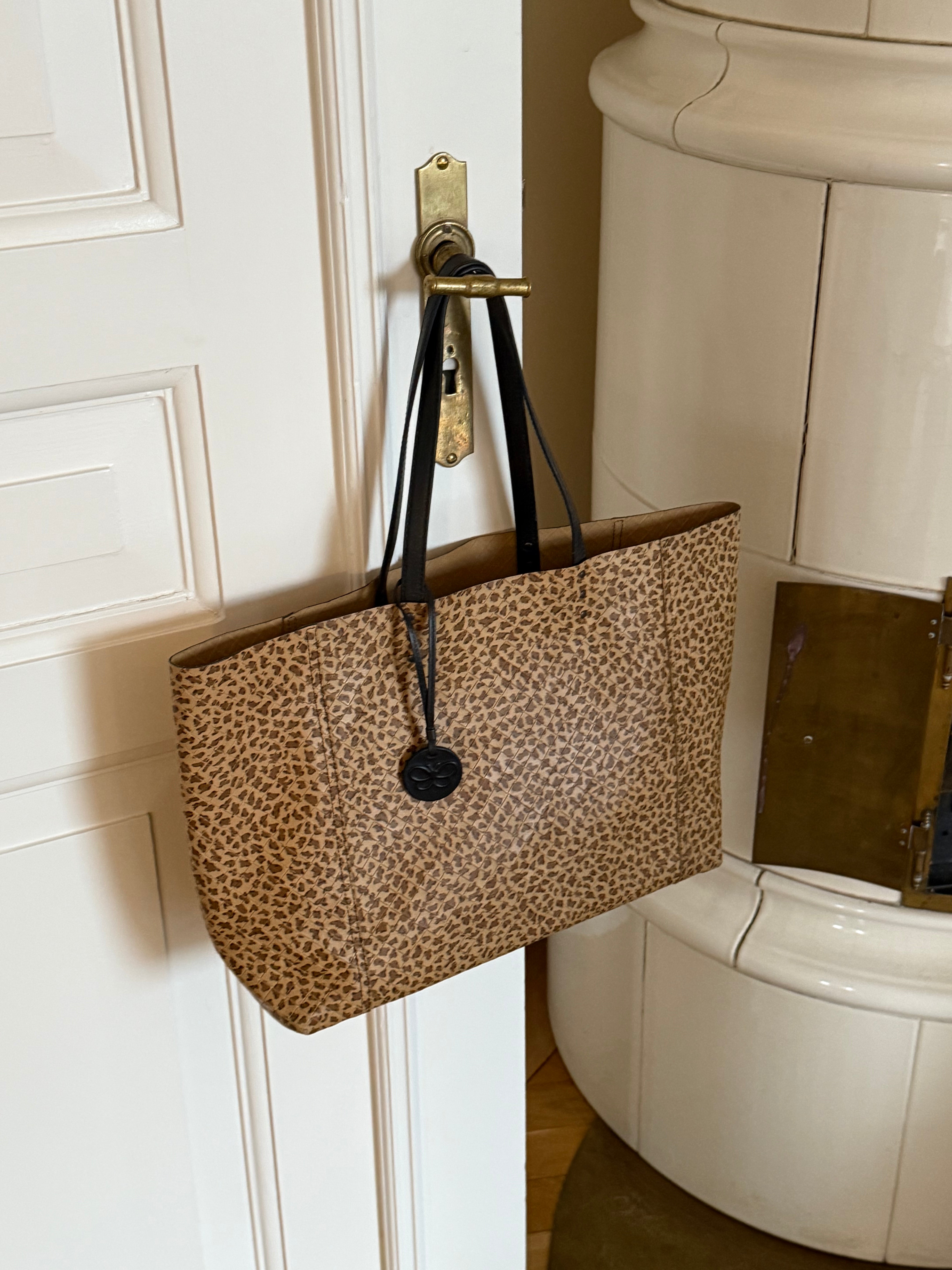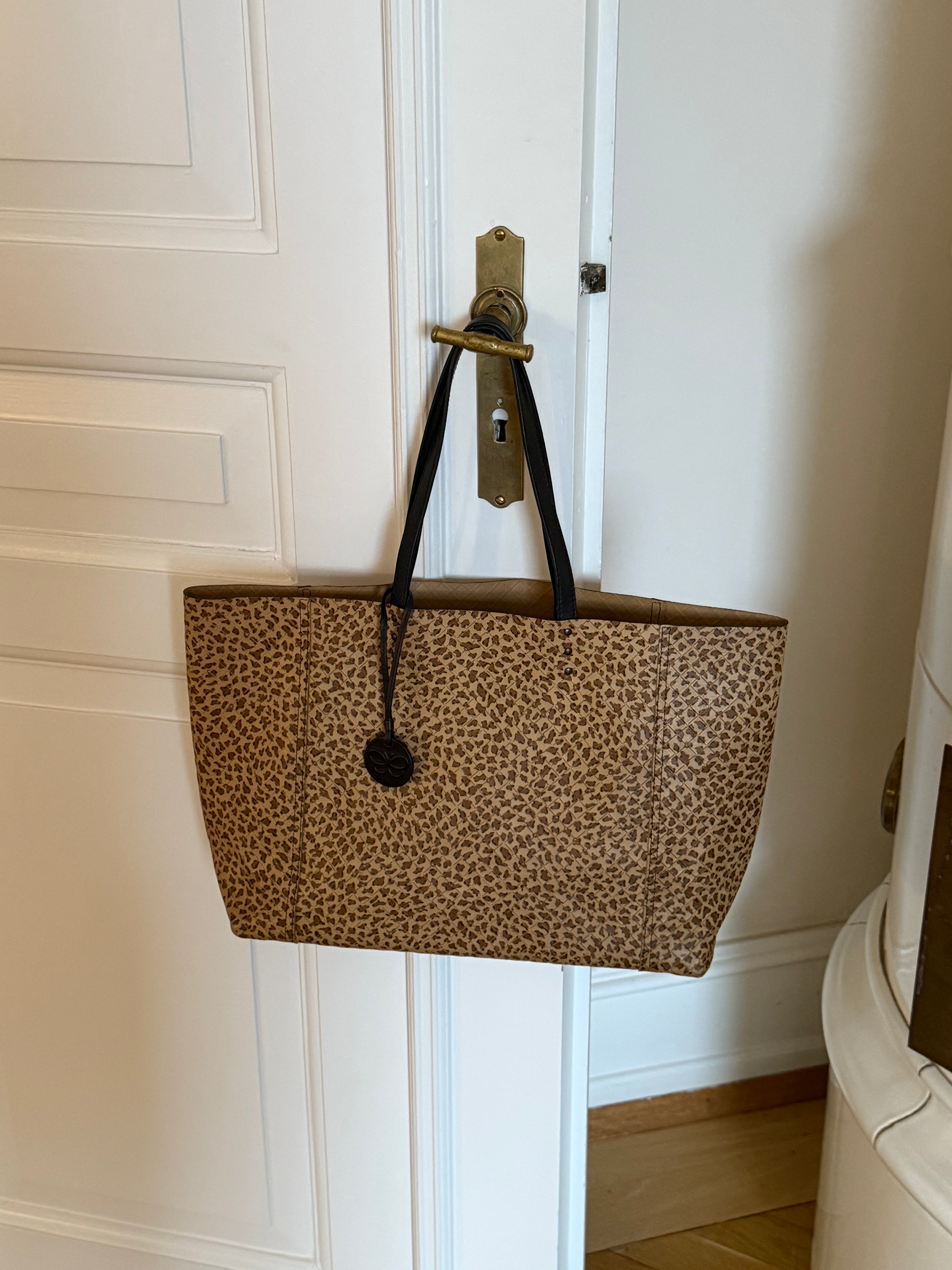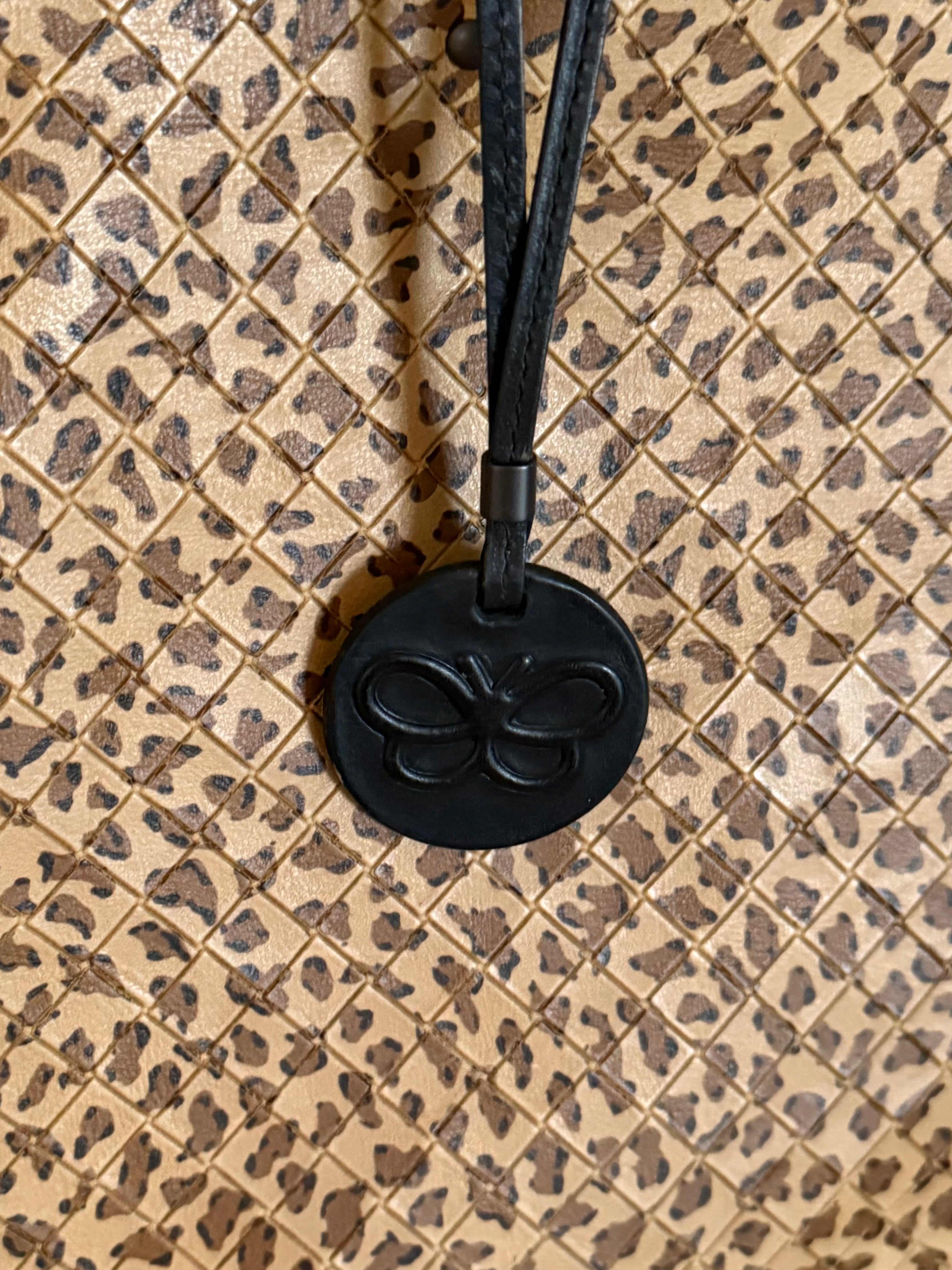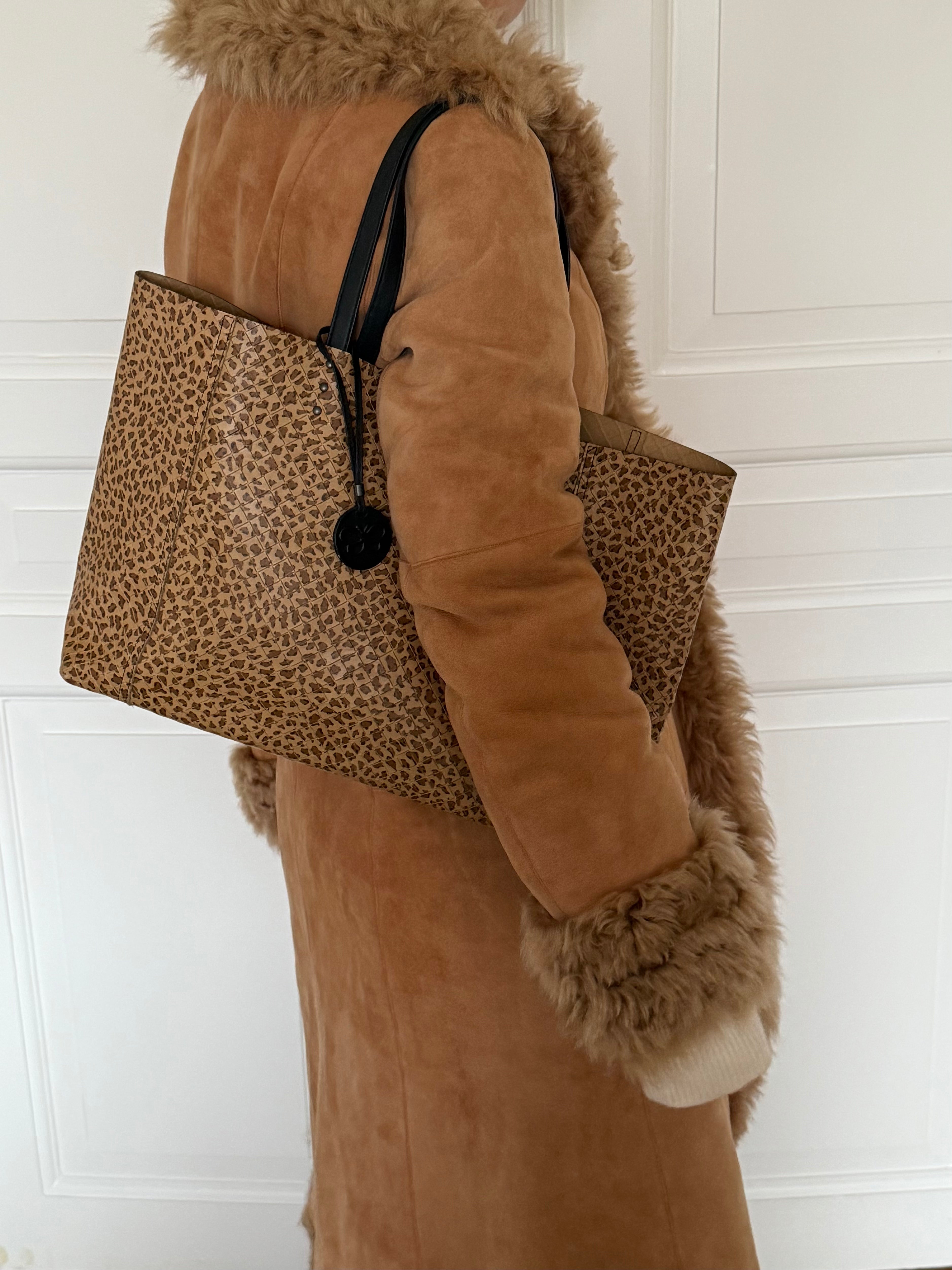 Stunning vintage Bottega Veneta leopard tote bag in soft calf leather with a cute butterfly charm in black.