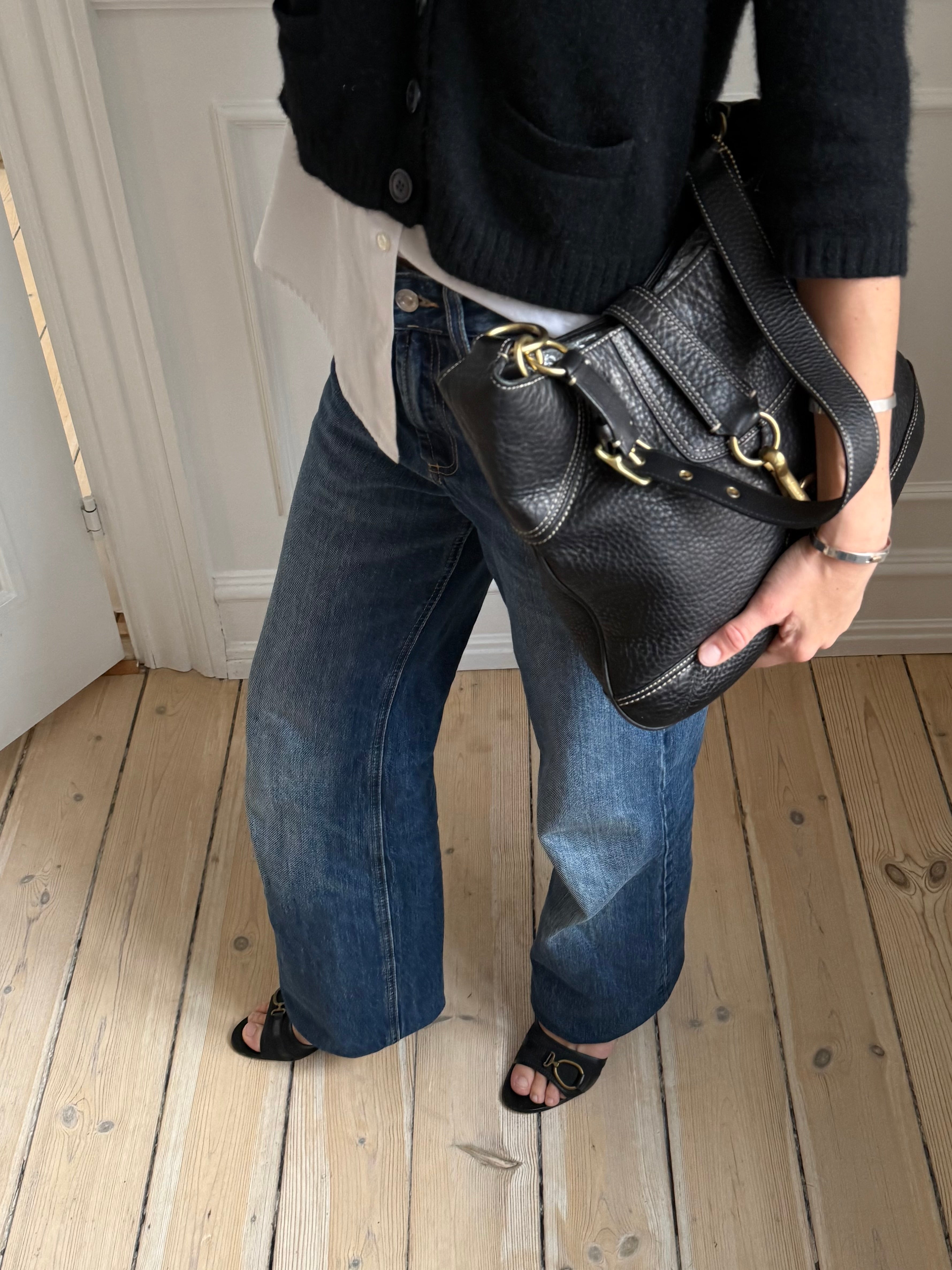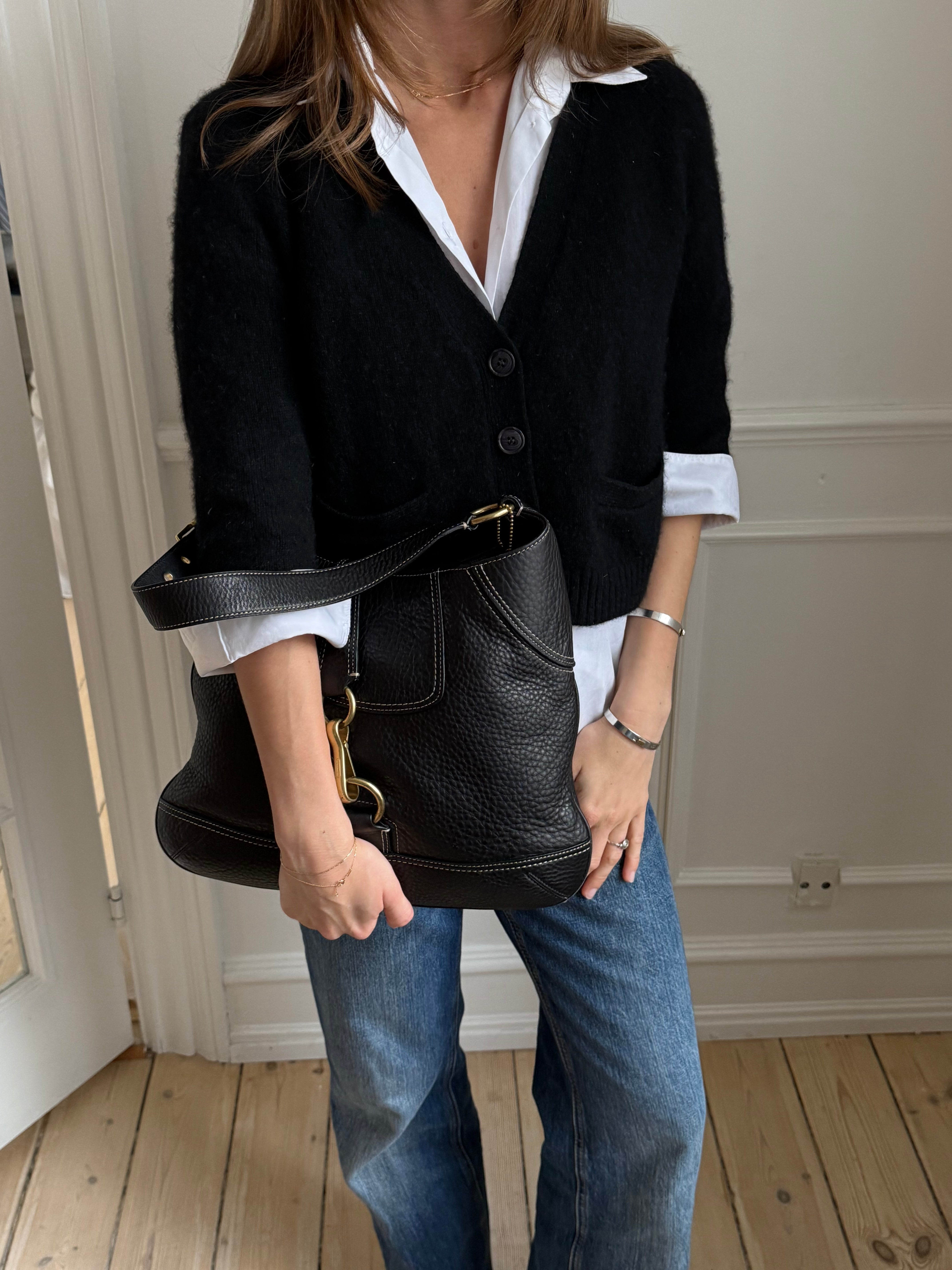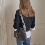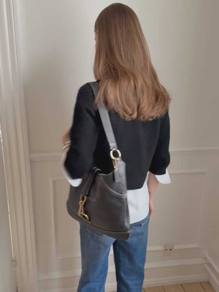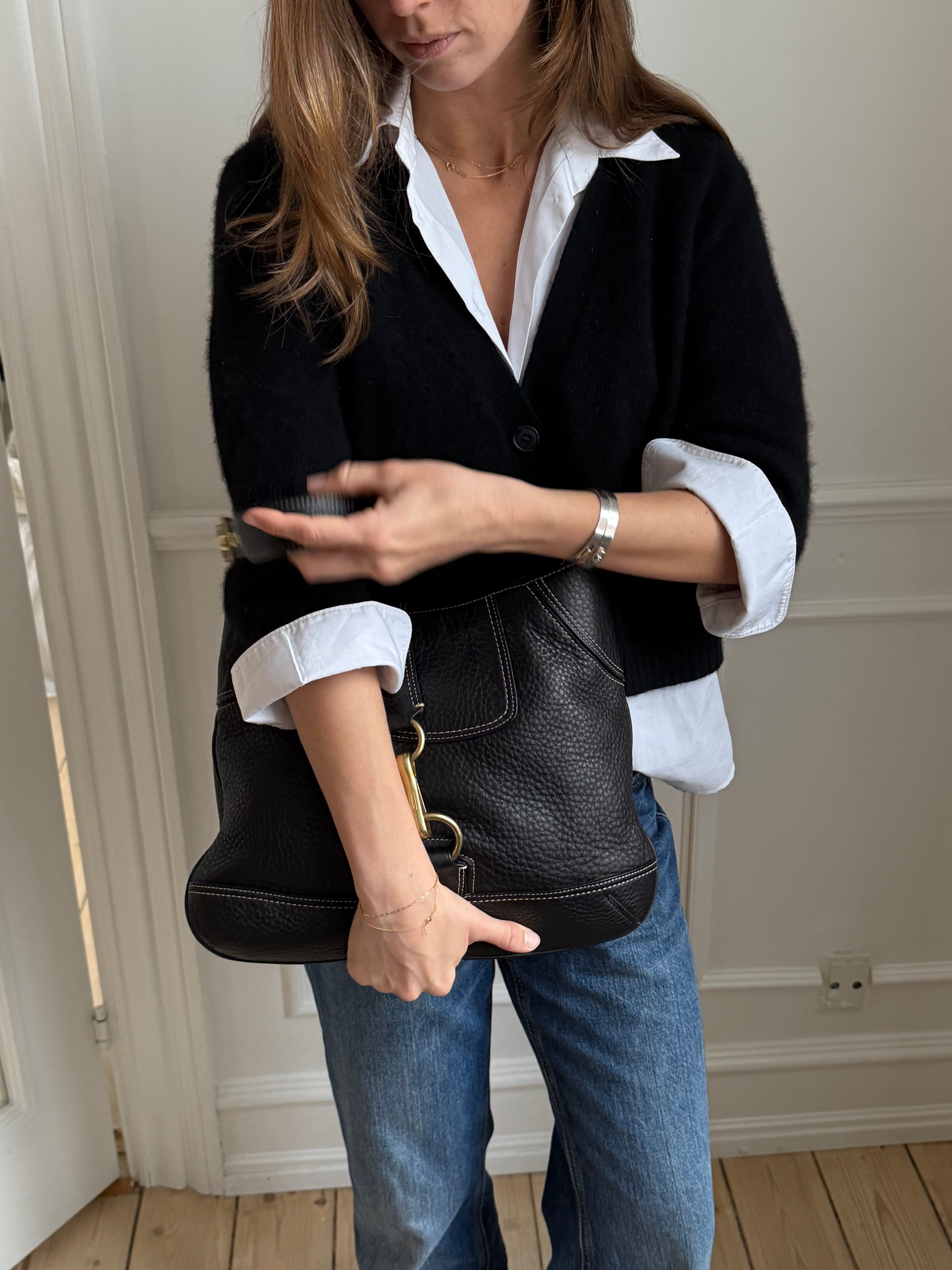 Vintage Coach leather Hampton hobo bag, crafted in pebbled leather with gold-tone hardware and contrast stitching. Features a front buckle detail, zip pocket at the back, and adjustable strap.