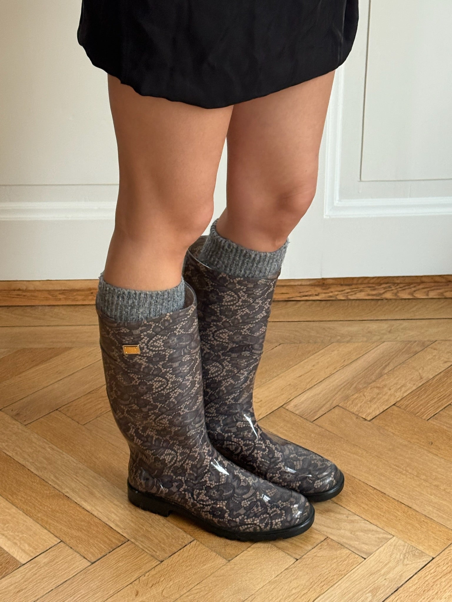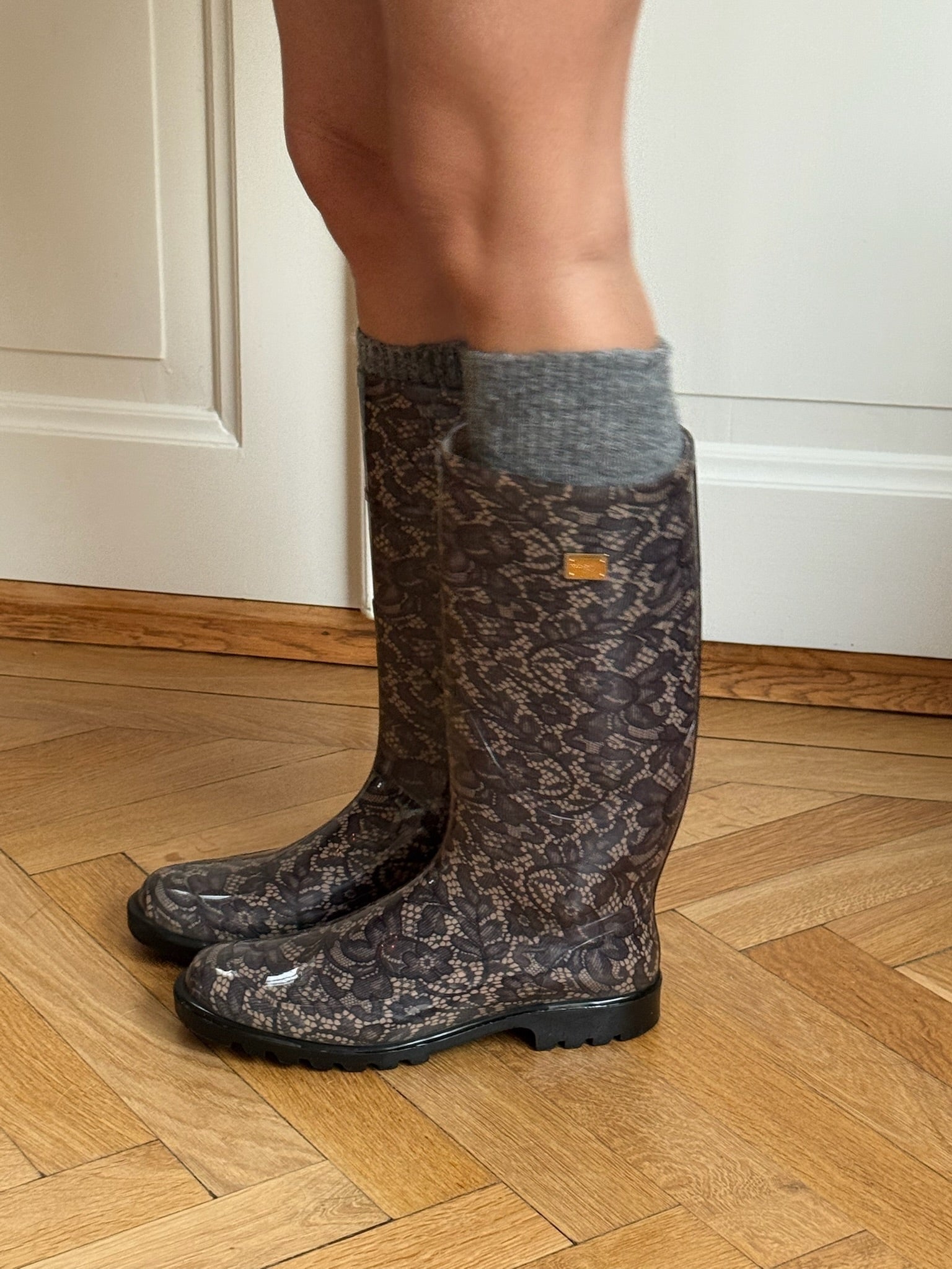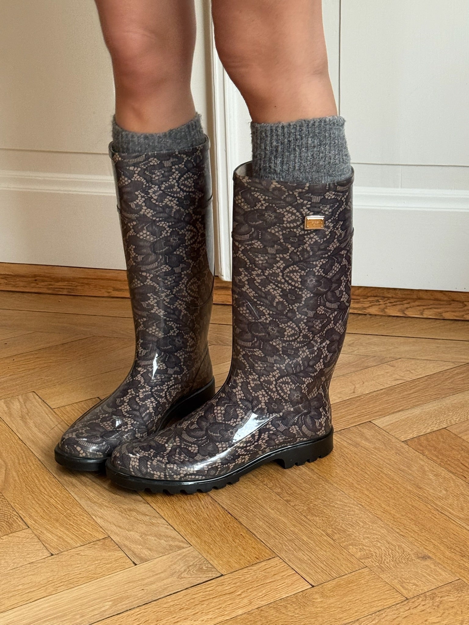 Vintage Dolce & Gabbana lace-patterned rubber rain boots.