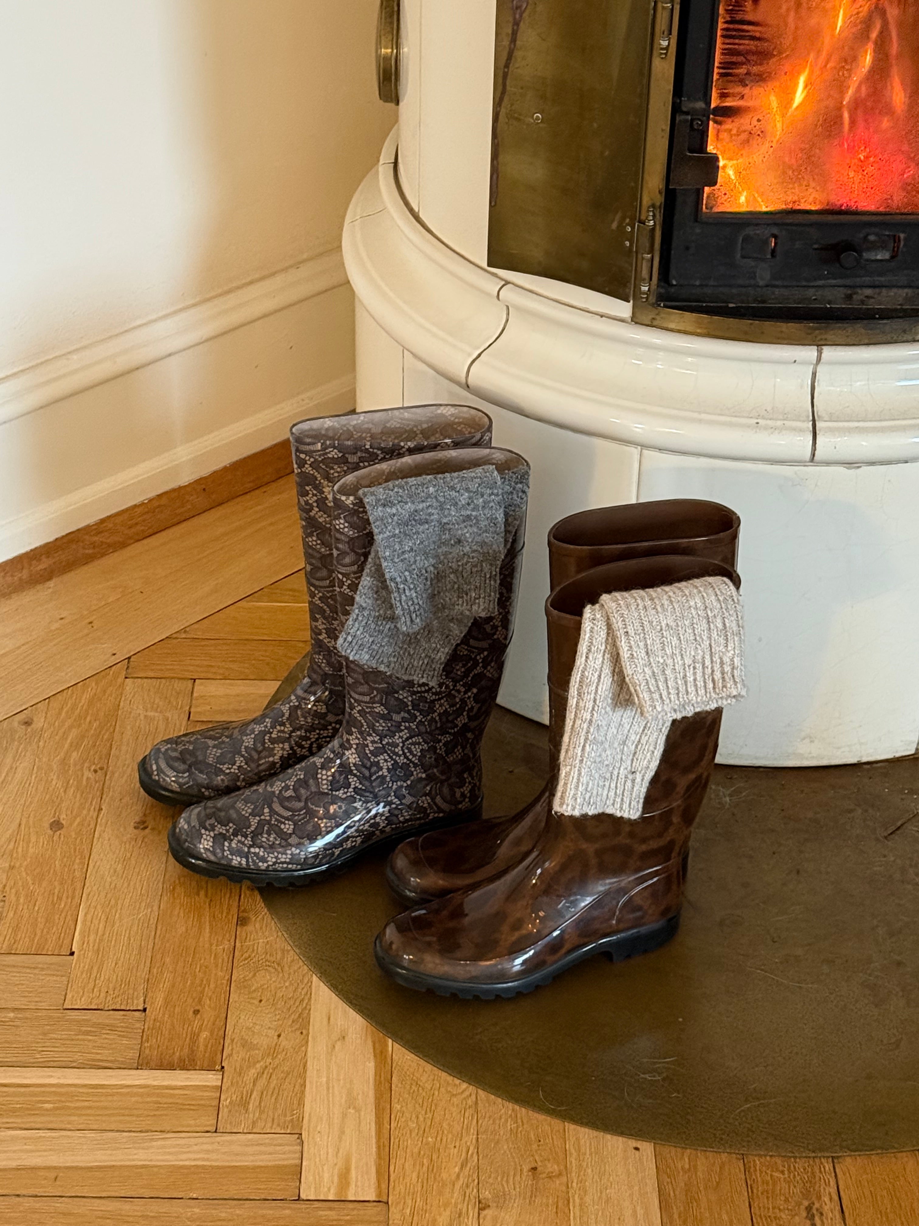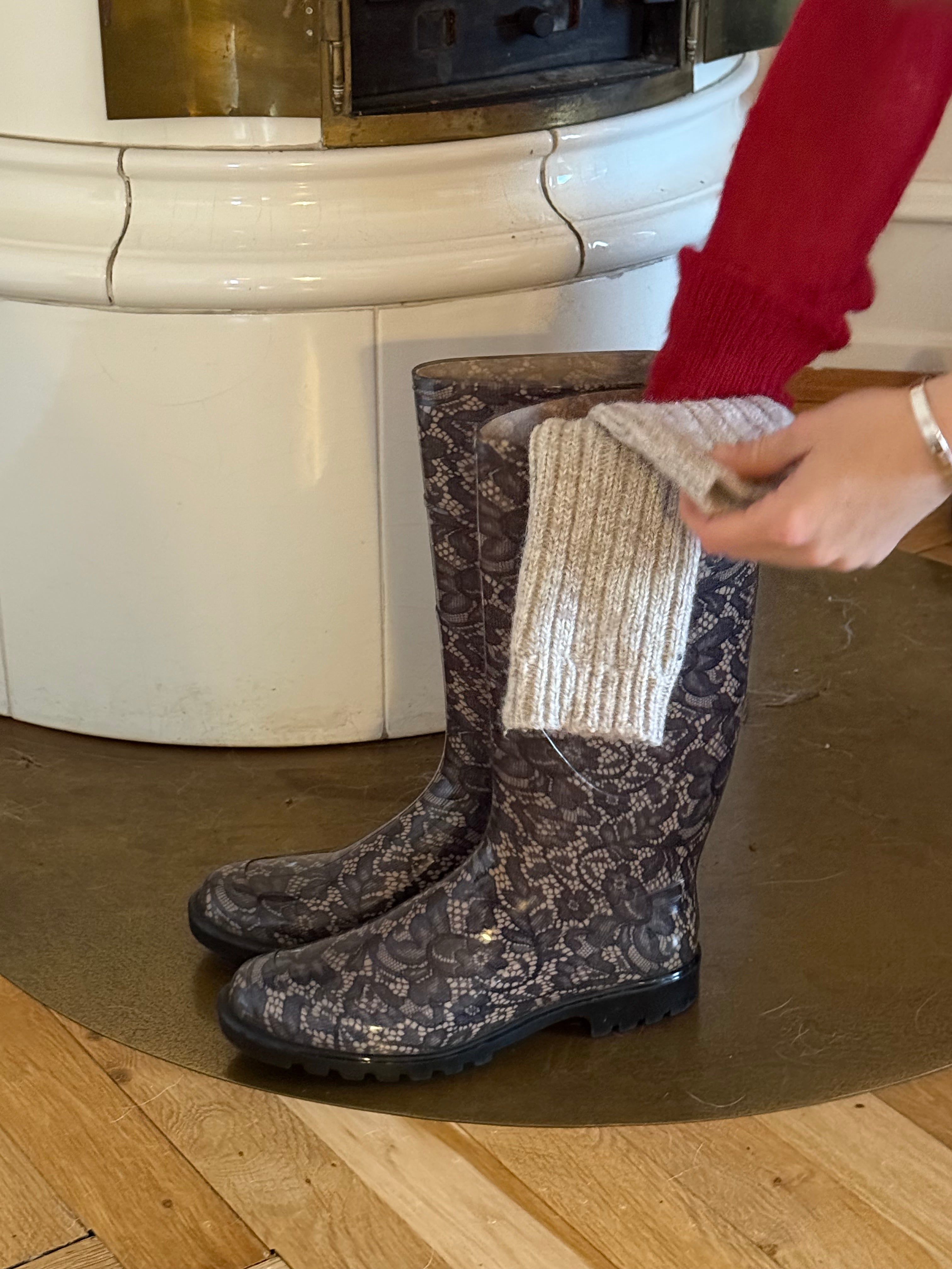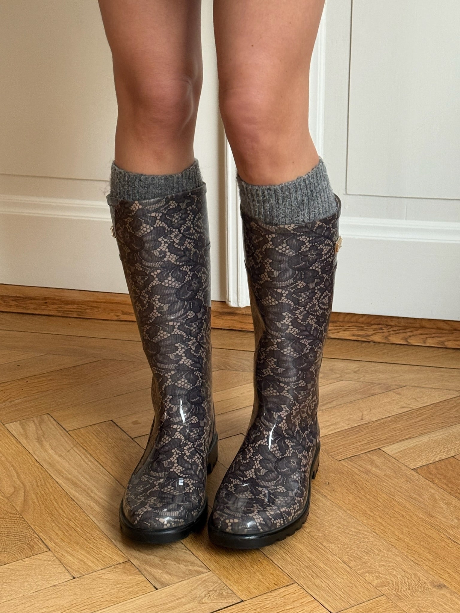 Vintage Dolce & Gabbana lace-patterned rubber rain boots.