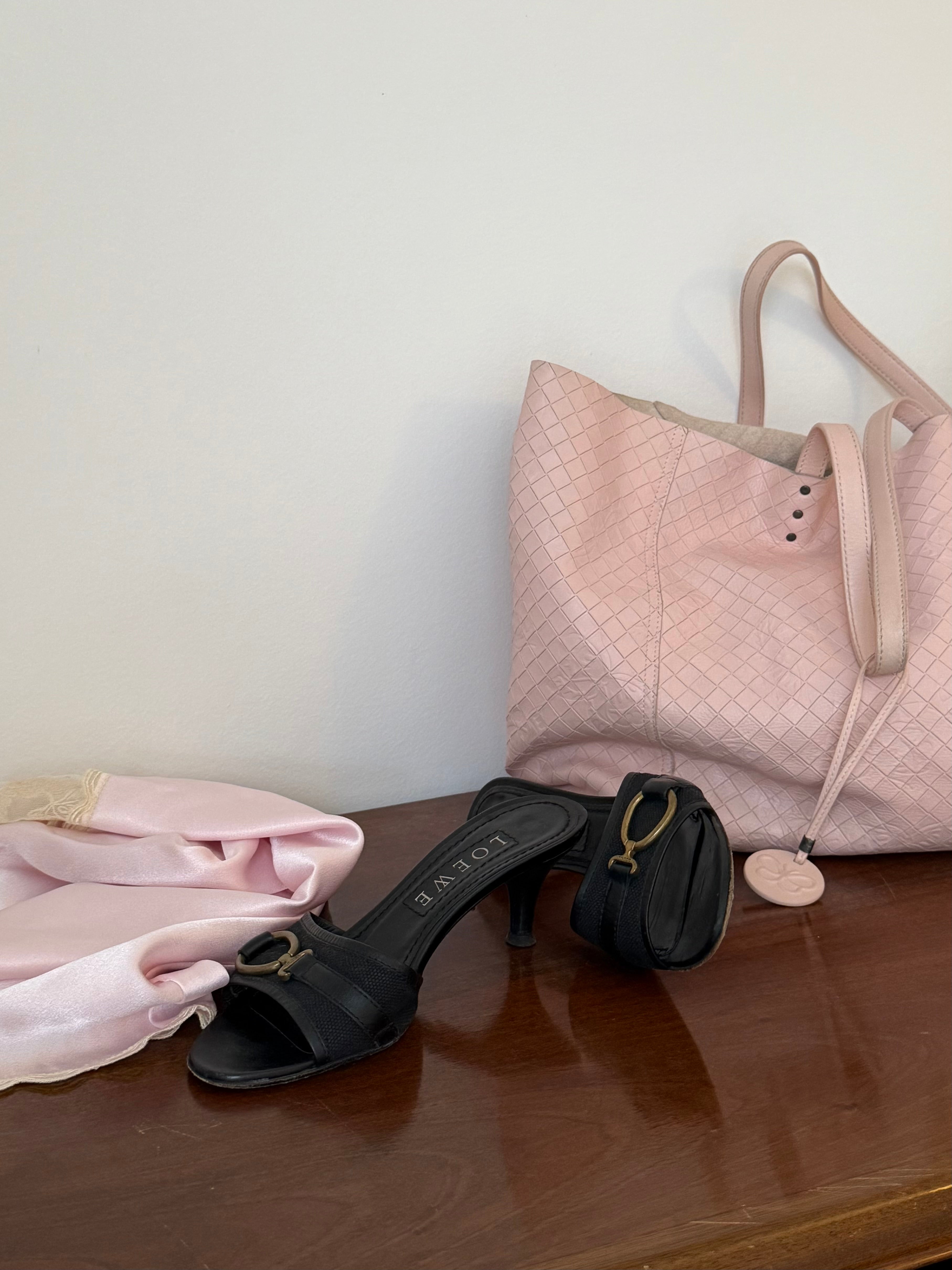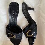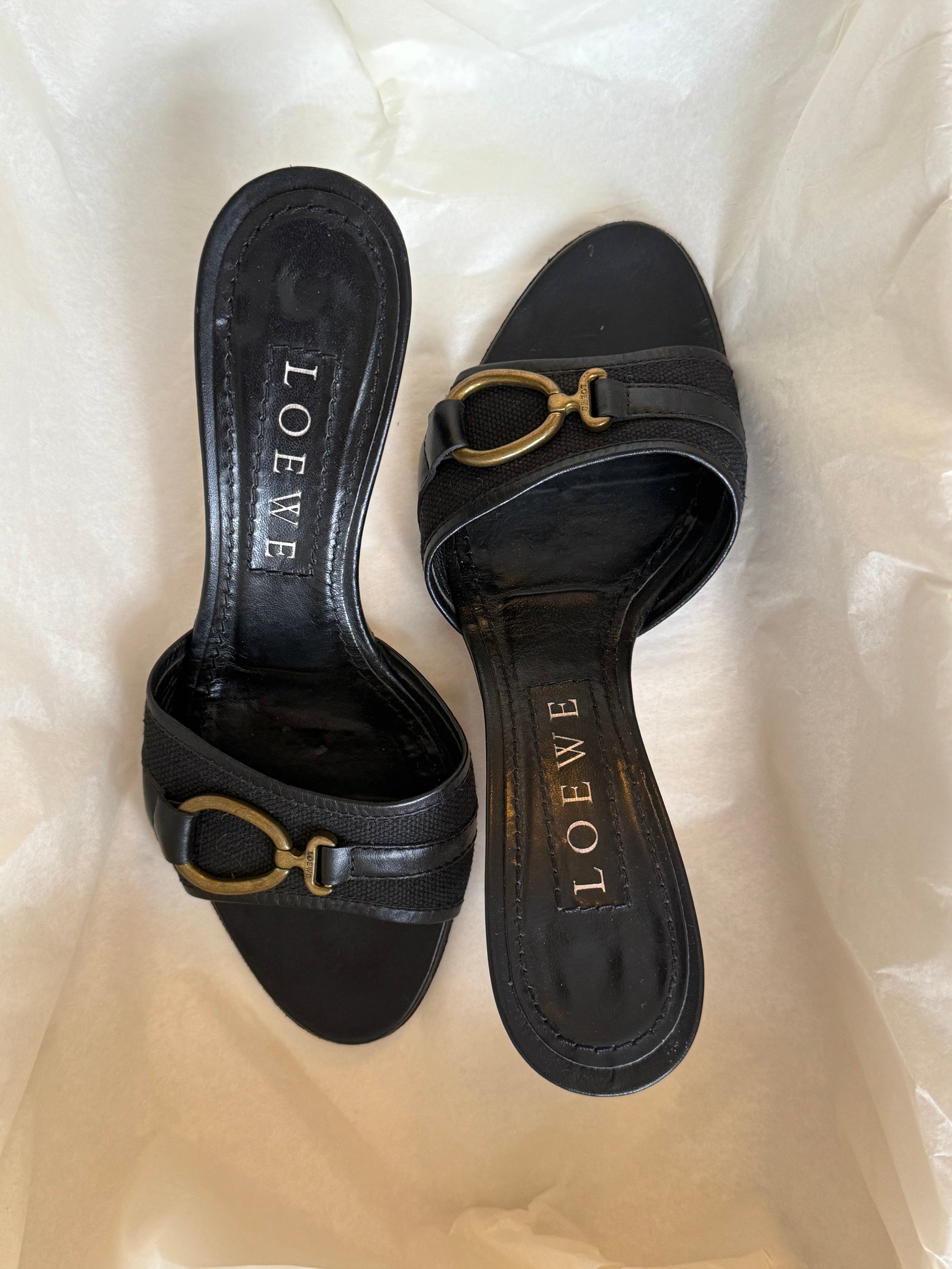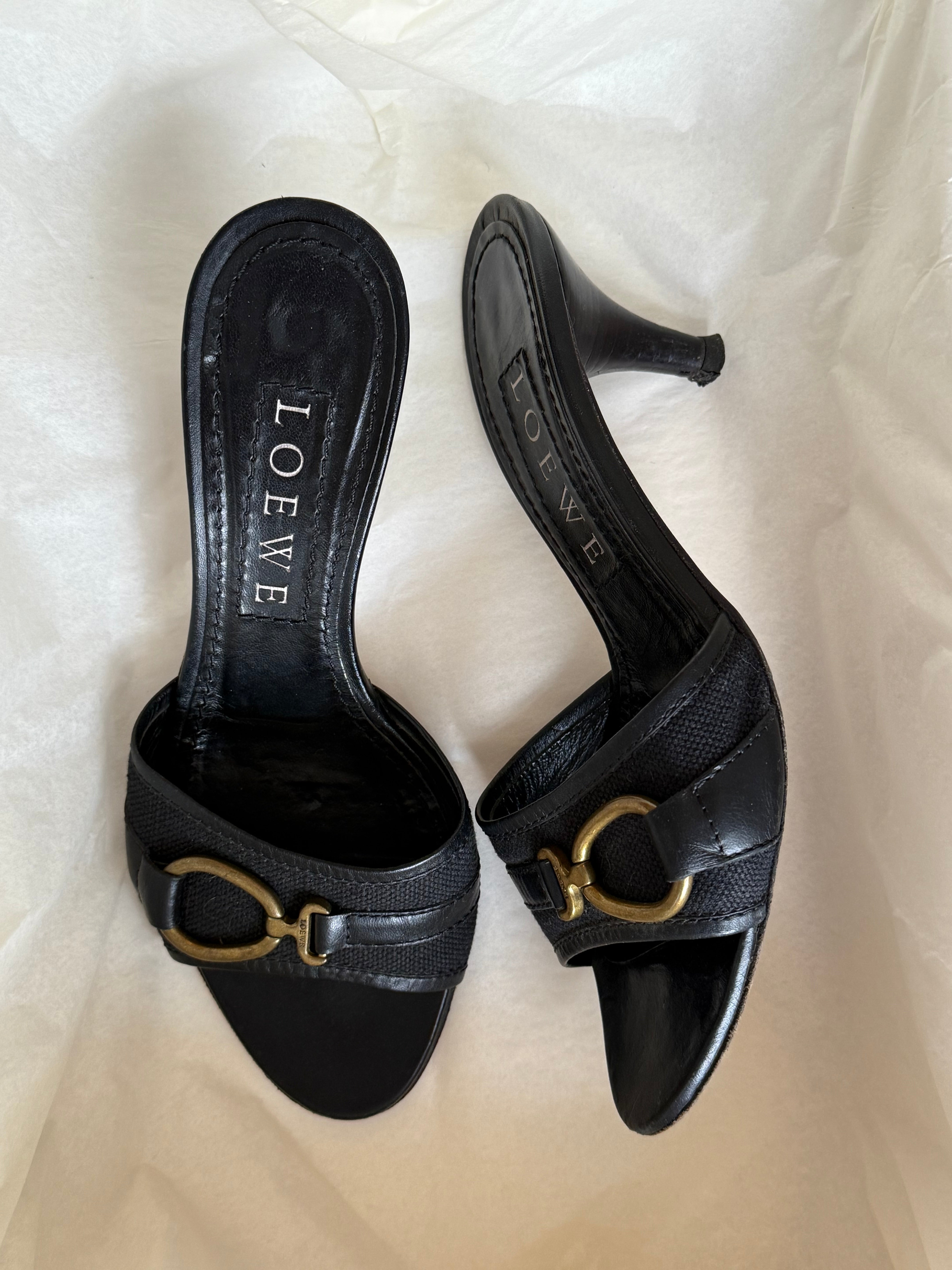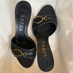 Black Loewe leather mules with wide strap and gold-tone ring detail. Comes with the original box and dustbags.