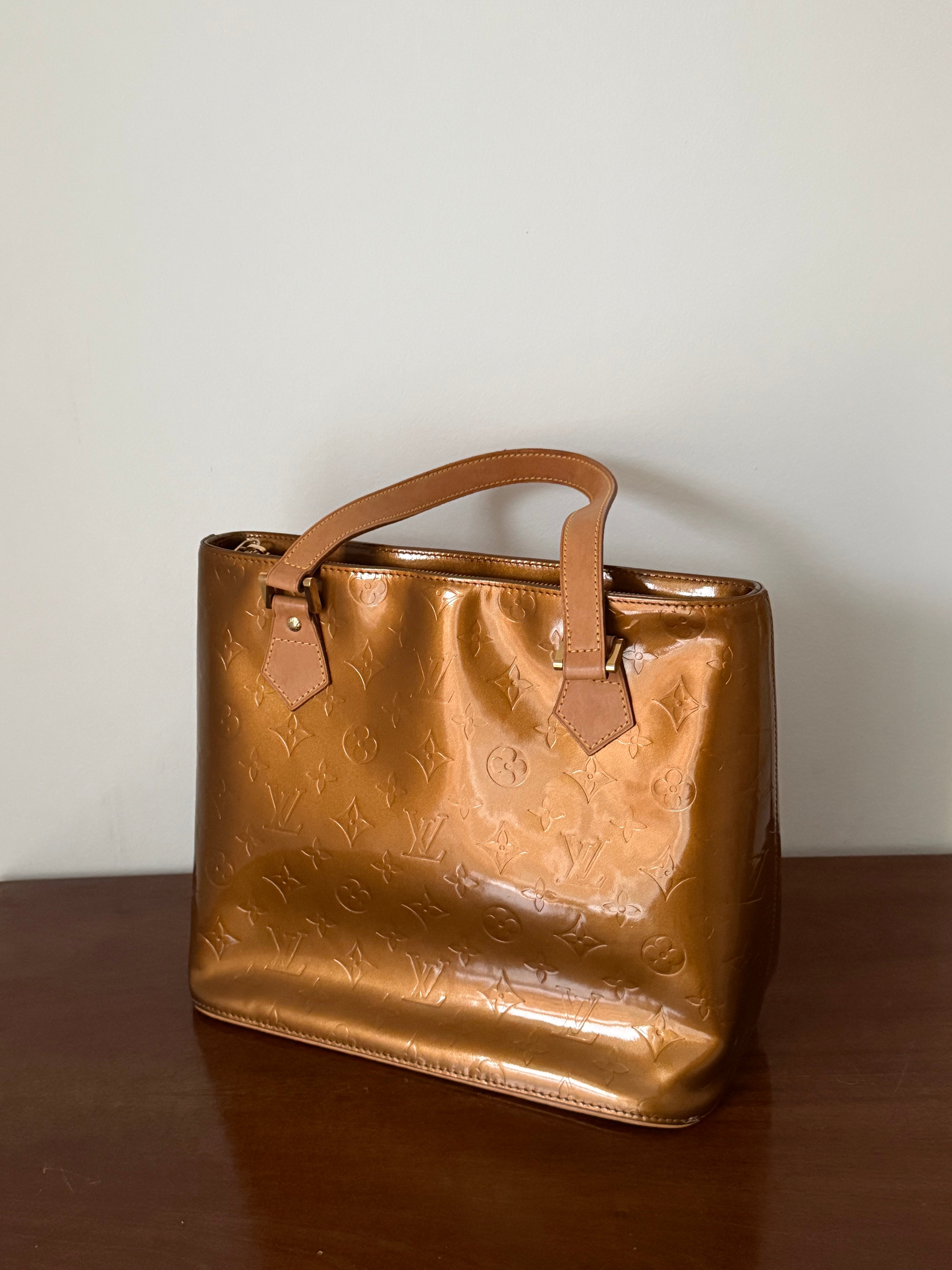 Vintage Louis Vuitton Monogram Vernis Houston Leather Handbag in very good condition. The bag is in a beautiful brown color from the iconic Vernis line introduced in 1998.